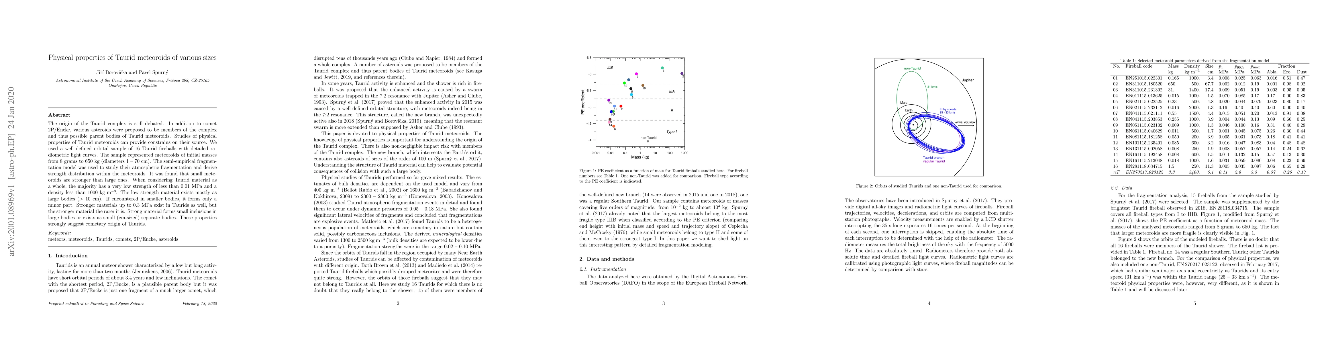 Research on Taurid meteoroids found that small ones are stronger than large ones, with most material having low strength, suggesting a cometary origin. This study helps constrain the source of the Taurid complex.