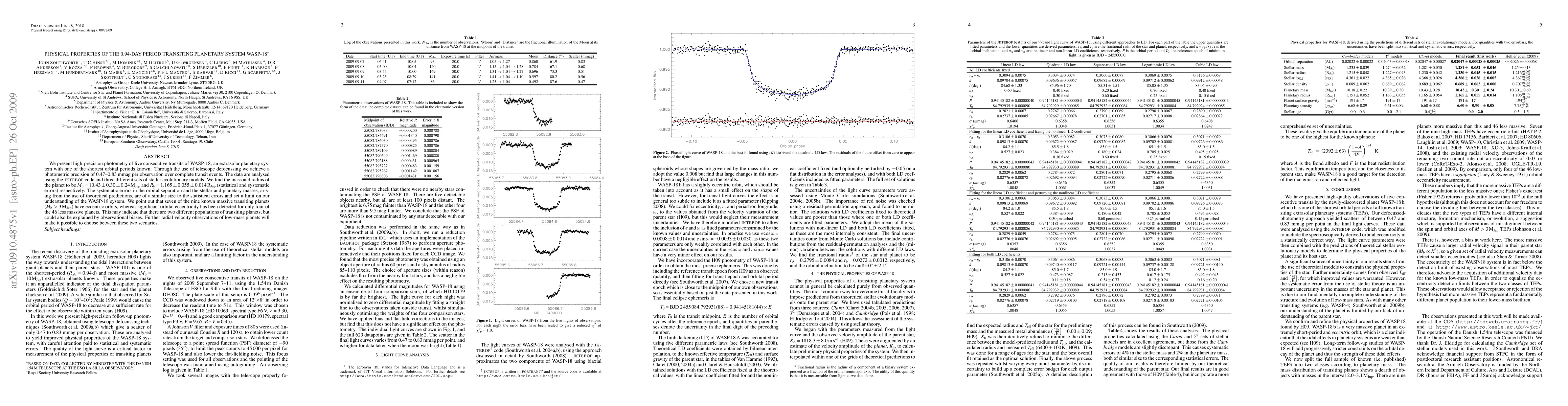 This study uses high-precision photometry to analyze five transits of the short-period extrasolar system WASP-18, determining the planet's mass and radius with significant systematic errors. It suggests a possible distinction between massive and less massive transiting planets in terms of orbital eccentricity, hinting at different populations or observational biases.
