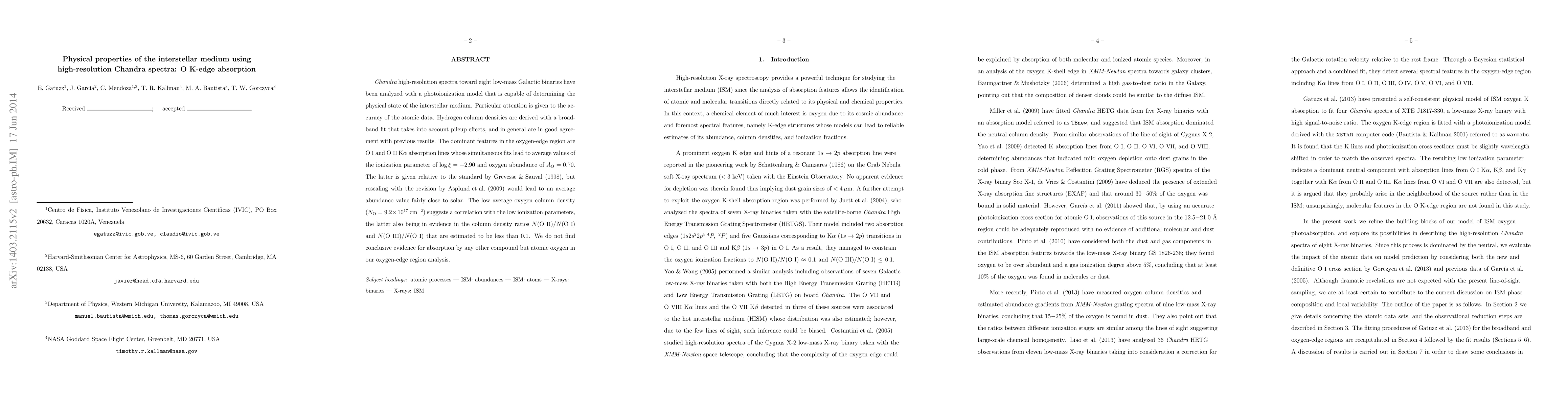 Chandra high-resolution spectra toward eight low-mass Galactic binaries have been analyzed with a photoionization model that is capable of determining the physical state of the interstellar medium. Particular attention is given to the accuracy of the atomic data. Hydrogen column densities are derived with a broadband fit that takes into account pileup effects, and in general are in good agreement with previous results. The dominant features in the oxygen-edge region are O I and O II K$\alpha$ absorption lines whose simultaneous fits lead to average values of the ionization parameter of $\log\xi=-2.90$ and oxygen abundance of $A_{\rm O}=0.70$. The latter is relative to the standard by Grevesse & Sauval (1998), but a rescaling with the revision by Asplund et al. (2009) would lead to an average abundance value fairly close to solar. The low average oxygen column density ($N_{\rm O}=9.2 \times 10^{17}$ cm$^{-2}$) suggests a correlation with the low ionization parameters, the latter also being in evidence in the column density ratios OII/OI and OIII/OI that are estimated to be less than 0.1. We do not find conclusive evidence for absorption by any other compound but atomic oxygen.
