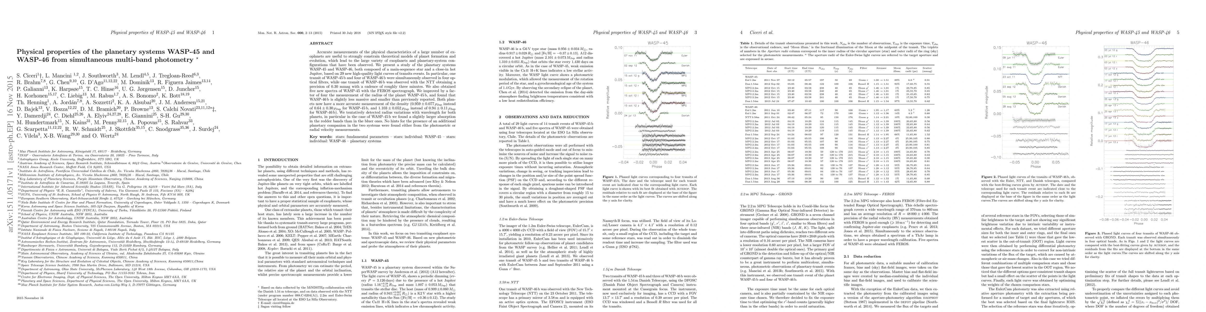 This study refines the physical properties of the exoplanets WASP-45 b and WASP-46 b using high-precision multi-band photometry and spectroscopy, revealing more accurate planetary radii and densities, and detecting wavelength-dependent radius variations.