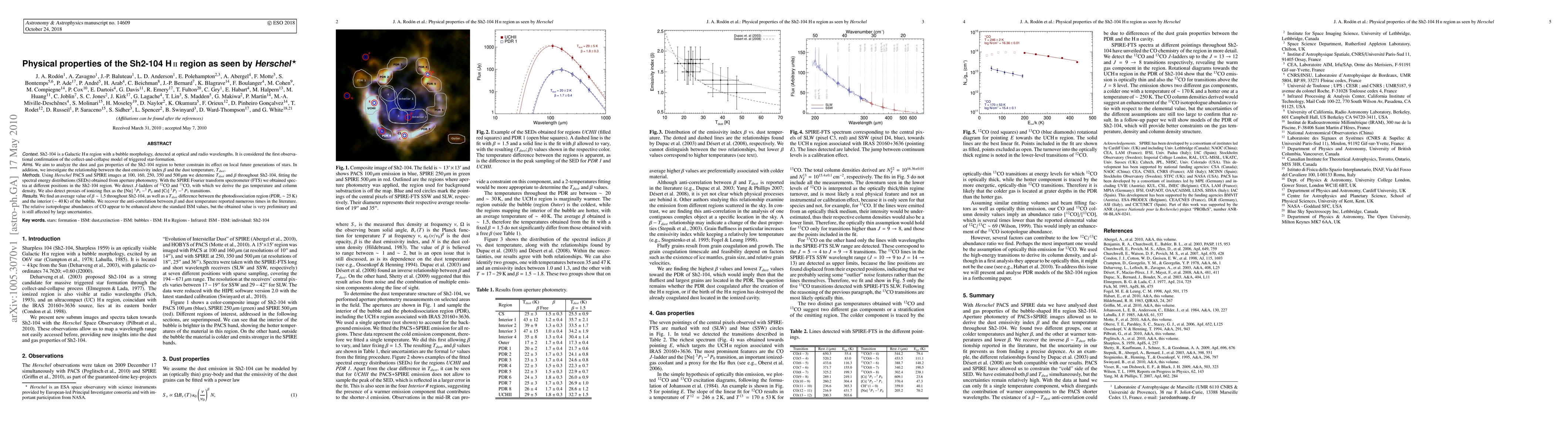 Researchers studied the physical properties of the Sh2-104 HII region using Herschel telescope data, finding an average dust emissivity index of 1.5 and a temperature difference between the bubble's interior and photodissociation region.