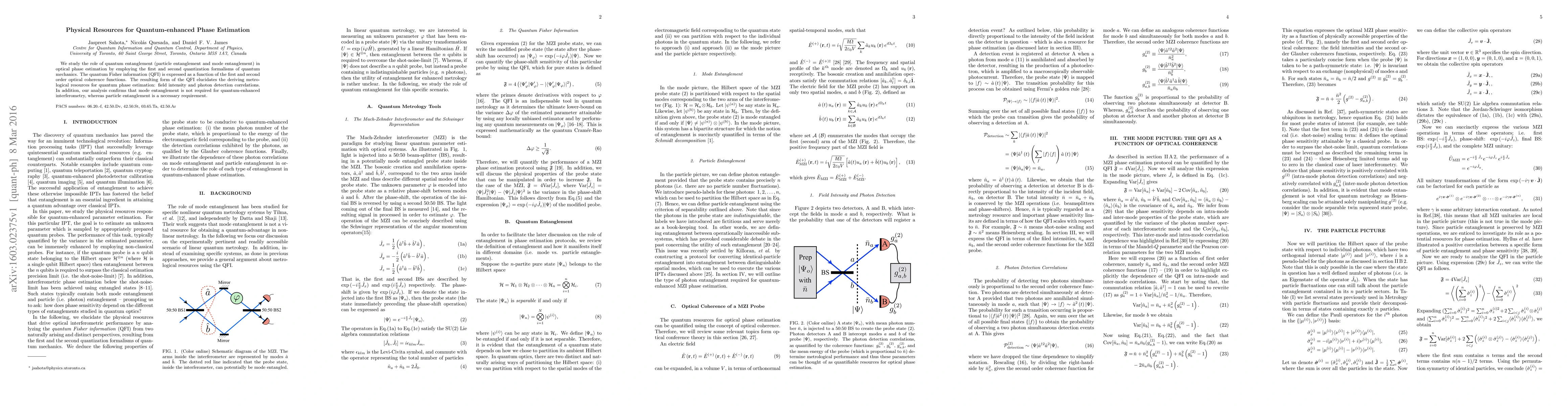 This paper investigates the role of quantum entanglement in optical phase estimation using quantum Fisher information, revealing that field intensity and photon detection correlations are key metrological resources. It concludes that while particle entanglement is essential, mode entanglement is not necessary for quantum-enhanced interferometry.