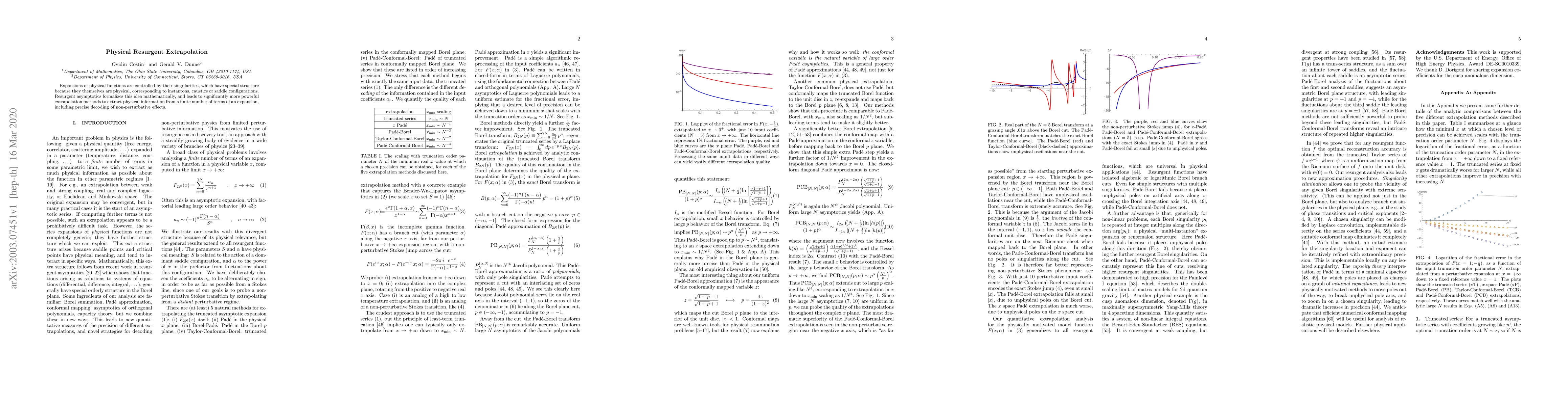 This paper explores resurgent asymptotics to enhance extrapolation methods for physical functions, leveraging the special structure of singularities like instantons and caustics to decode non-perturbative effects from finite expansion terms. The approach provides powerful tools for extracting precise physical information.