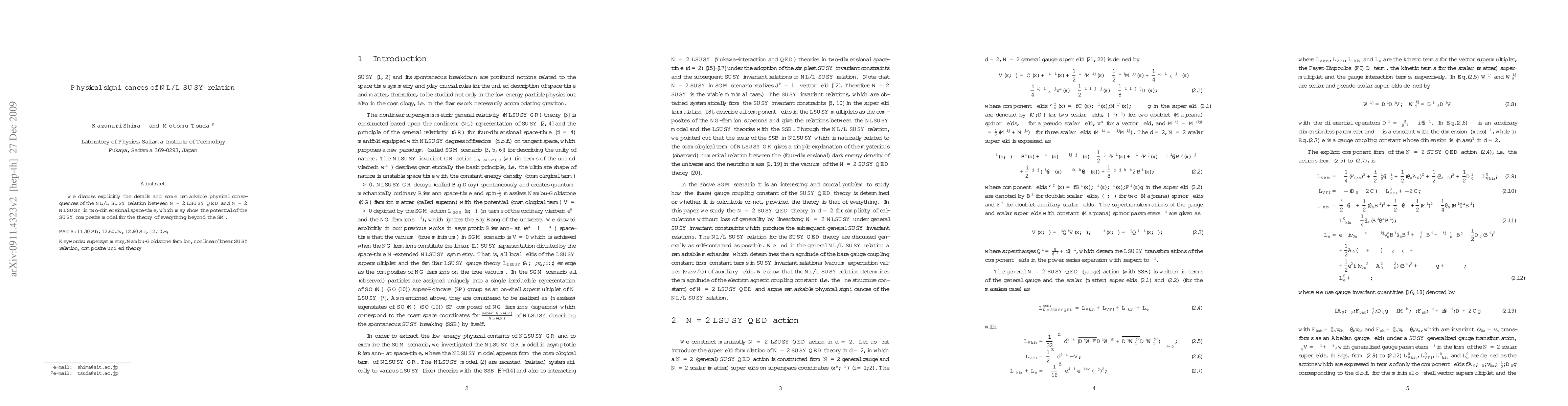 This paper explores the physical implications of the NL/L SUSY relation in two-dimensional space-time, comparing N = 2 LSUSY QED and N = 2 NLSUSY, and suggests its potential relevance for a composite model in the theory of everything beyond the Standard Model.