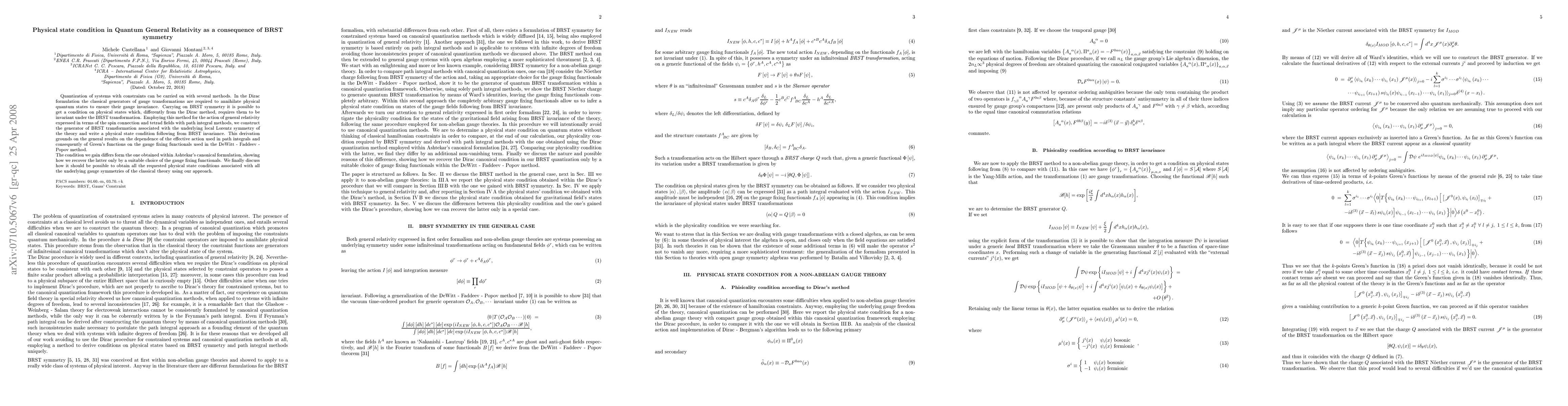 This paper explores the quantization of general relativity using BRST symmetry, deriving a physical state condition that differs from the Dirac method and Ashtekar's canonical formulation, and shows how it can be adapted to account for the theory's gauge symmetries.