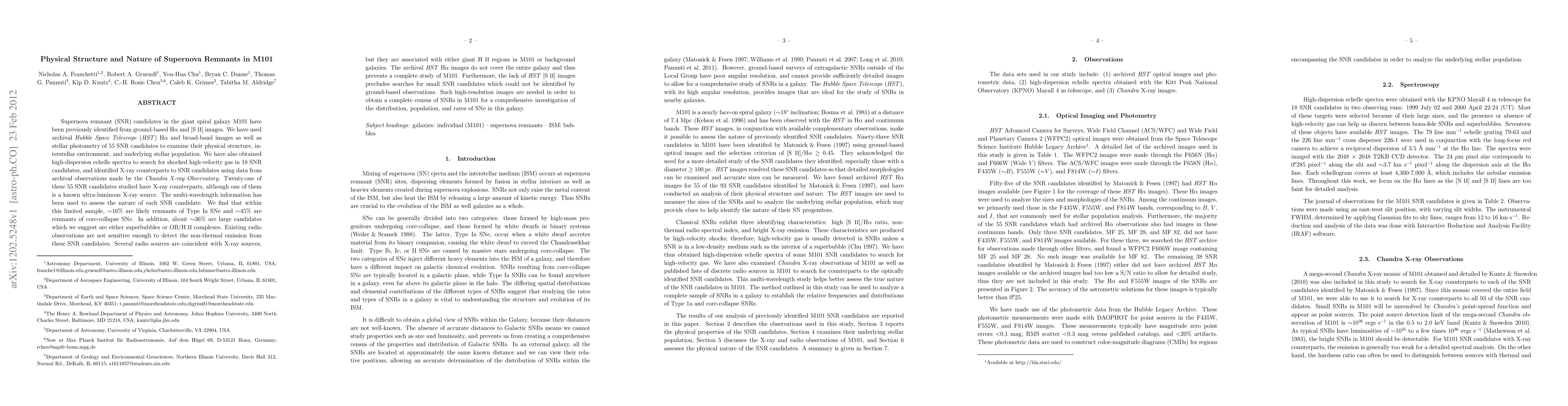 A study of 55 supernova remnant candidates in galaxy M101 found that ~16% were likely Type Ia SNe remnants and ~45% core-collapse SNe remnants, with the remaining ~36% possibly being superbubbles or OB/HII complexes.