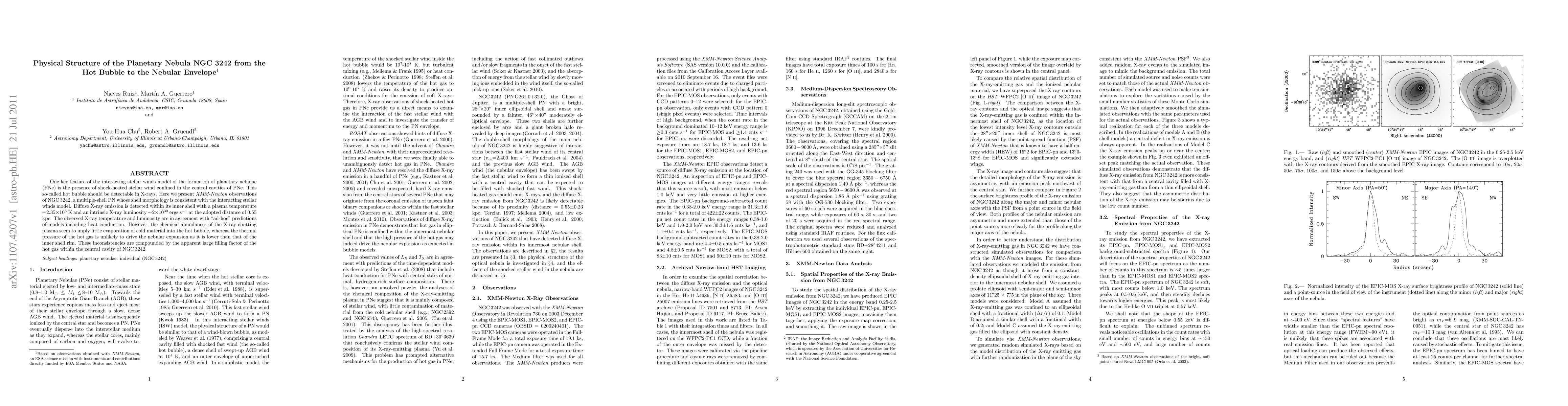 This study uses XMM-Newton observations to analyze NGC 3242, a multiple-shell planetary nebula, finding a hot bubble with X-ray emission consistent with shock-heated stellar winds. However, discrepancies arise in the expected evaporation of cold material and the driving forces of nebular expansion.