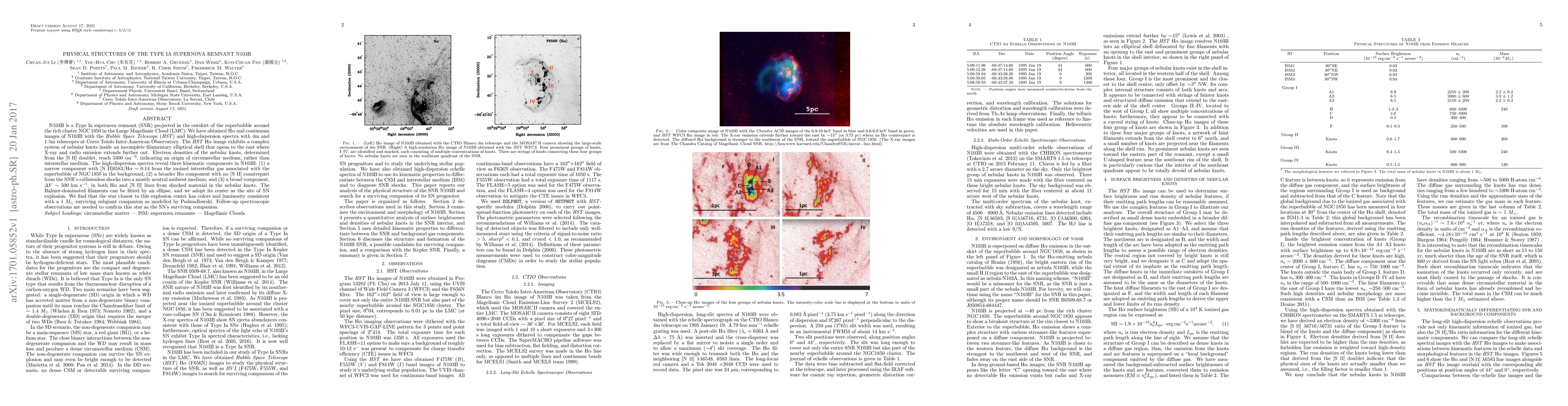 This paper investigates the physical structures of the Type Ia supernova remnant N103B in the Large Magellanic Cloud using HST and ground-based telescopes. The study reveals complex nebular knots within an elliptical shell, indicating a circumstellar medium origin, and identifies three kinematic components, suggesting interactions with both interstellar and circumstellar material.