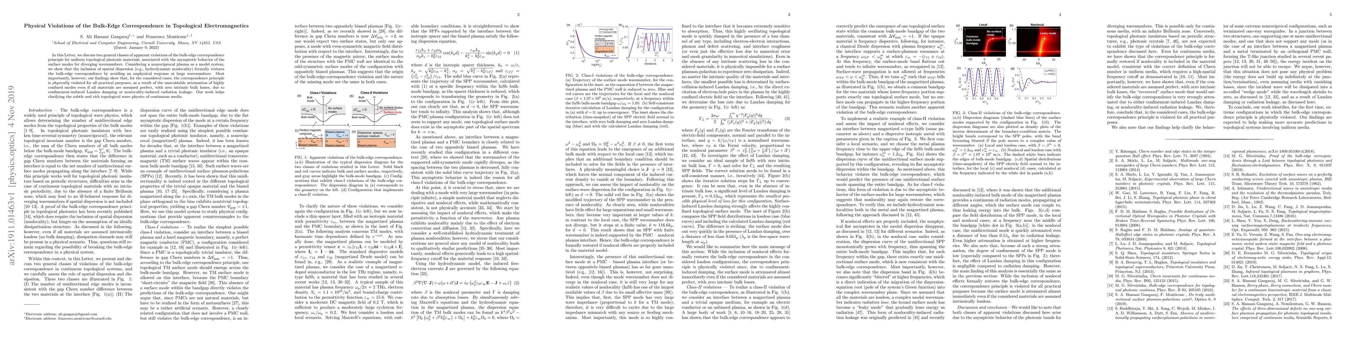 This paper identifies violations of the bulk-edge correspondence in topological photonic materials, particularly in nonreciprocal plasmas. It reveals that spatial dispersion can restore the correspondence but highlights that practical physical violations are due to confinement-induced effects like Landau damping.