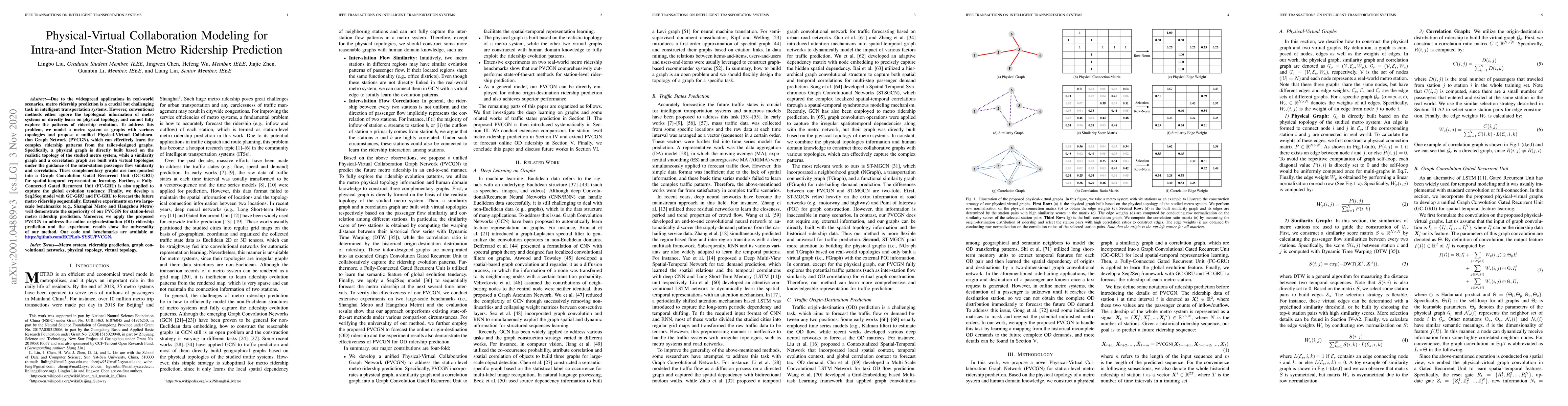 This paper proposes a Physical-Virtual Collaboration Graph Network (PVCGN) to predict metro ridership by integrating physical and virtual topological graphs. The PVCGN model uses a combination of spatial-temporal learning and global evolution capture to forecast metro ridership effectively, demonstrating superior performance on large-scale metro datasets.