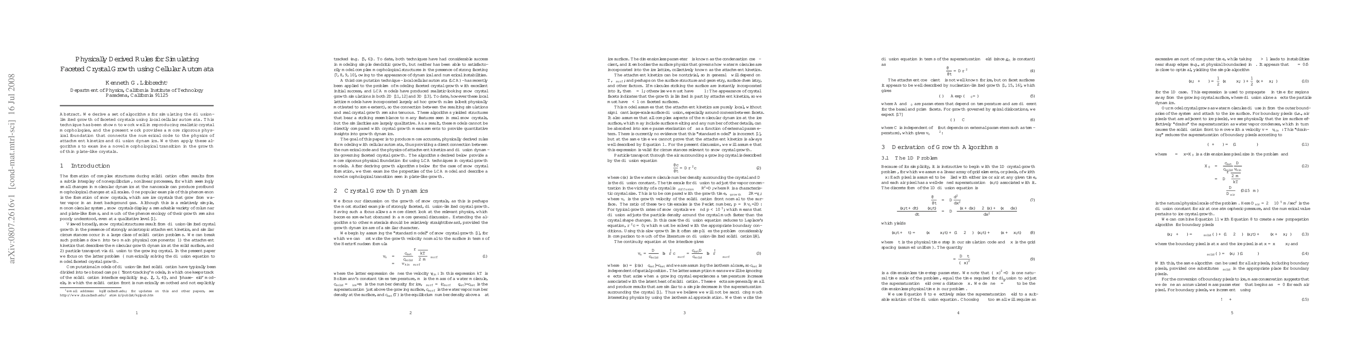 This paper develops algorithms for simulating faceted crystal growth using cellular automata, providing a more rigorous physical foundation based on attachment kinetics and diffusion dynamics. It also explores a novel morphological transition in the growth of thin plate-like crystals.