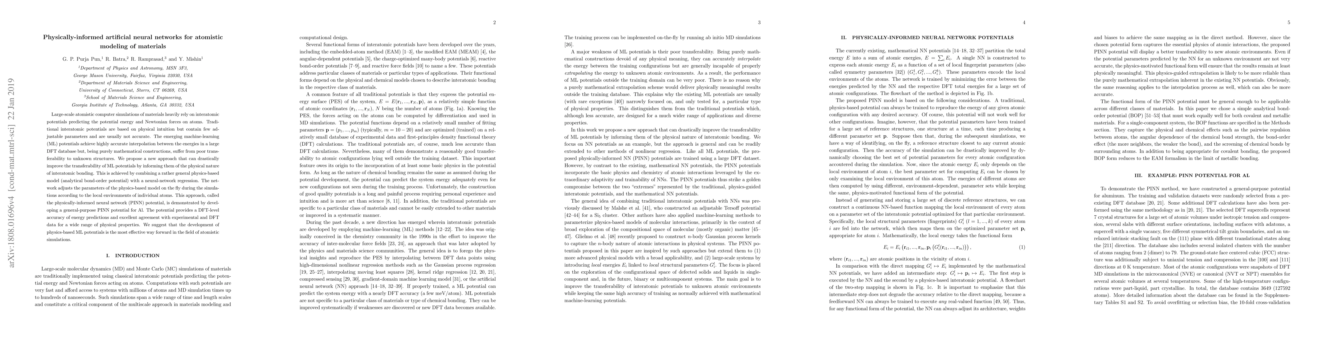 This paper introduces a physically-informed neural network (PINN) potential that combines a physics-based model with neural-network regression to enhance the transferability of machine-learning potentials in atomistic simulations. The proposed PINN potential for aluminum demonstrates DFT-level accuracy and broad applicability to various physical properties.