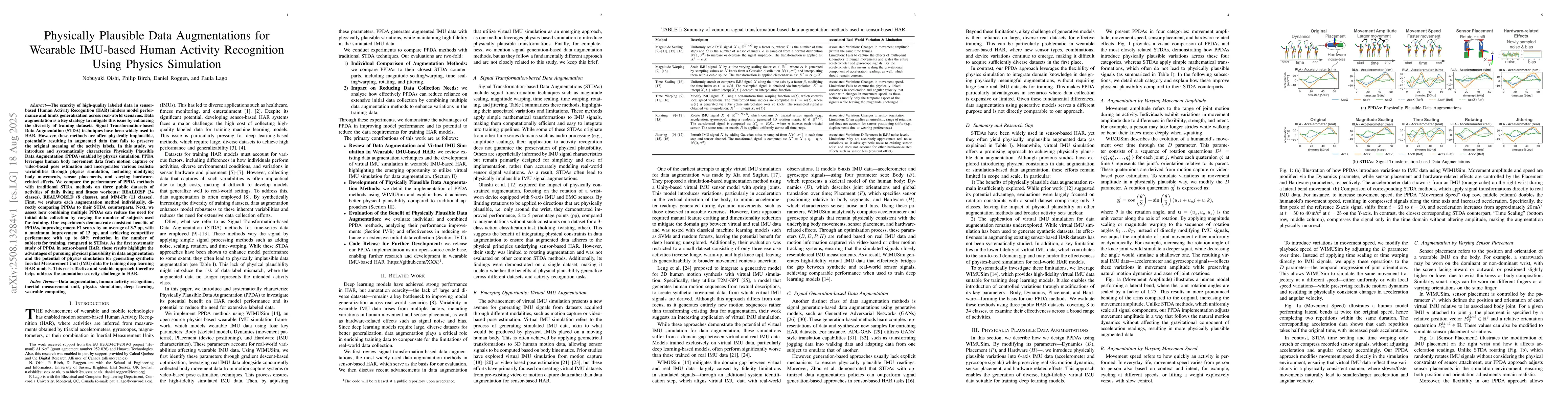 The scarcity of high-quality labeled data in sensor-based Human Activity Recognition (HAR) hinders model performance and limits generalization across real-world scenarios. Data augmentation is a key strategy to mitigate this issue by enhancing the diversity of training datasets. Signal Transformation-based Data Augmentation (STDA) techniques have been widely used in HAR. However, these methods are often physically implausible, potentially resulting in augmented data that fails to preserve the original meaning of the activity labels. In this study, we introduce and systematically characterize Physically Plausible Data Augmentation (PPDA) enabled by physics simulation. PPDA leverages human body movement data from motion capture or video-based pose estimation and incorporates various realistic variabilities through physics simulation, including modifying body movements, sensor placements, and hardware-related effects. We compare the performance of PPDAs with traditional STDAs on three public datasets of daily activities and fitness workouts. First, we evaluate each augmentation method individually, directly comparing PPDAs to their STDA counterparts. Next, we assess how combining multiple PPDAs can reduce the need for initial data collection by varying the number of subjects used for training. Experiments show consistent benefits of PPDAs, improving macro F1 scores by an average of 3.7 pp (up to 13 pp) and achieving competitive performance with up to 60% fewer training subjects than STDAs. As the first systematic study of PPDA in sensor-based HAR, these results highlight the advantages of pursuing physical plausibility in data augmentation and the potential of physics simulation for generating synthetic Inertial Measurement Unit data for training deep learning HAR models. This cost-effective and scalable approach therefore helps address the annotation scarcity challenge in HAR.