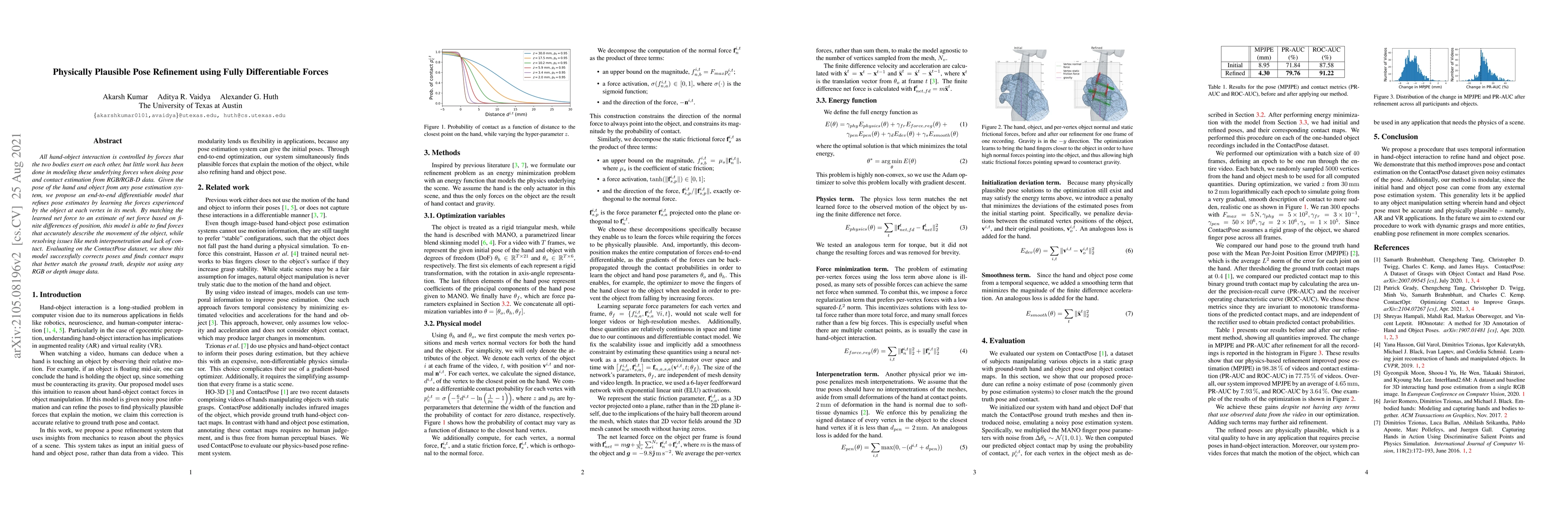 Researchers propose a new model that refines pose estimates of hand-object interactions by learning forces experienced by the object at each vertex, improving accuracy without using RGB or depth data.