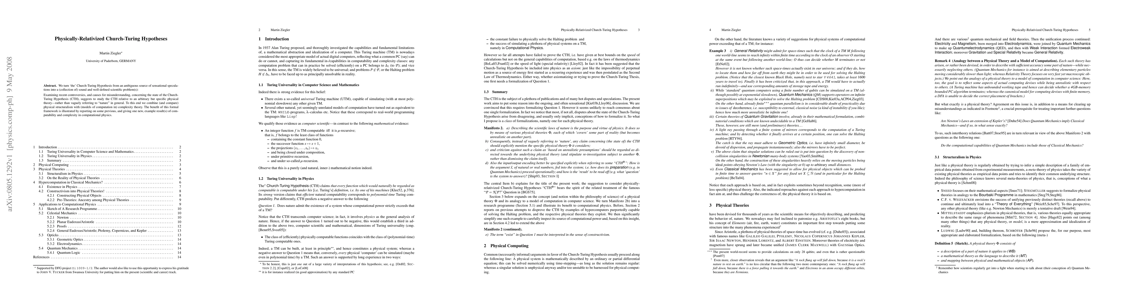 We turn `the' Church-Turing Hypothesis from an ambiguous source of sensational speculations into a (collection of) sound and well-defined scientific problem(s): Examining recent controversies, and causes for misunderstanding, concerning the state of the Church-Turing Hypothesis (CTH), suggests to study the CTH relative to an arbitrary but specific physical theory--rather than vaguely referring to ``nature'' in general. To this end we combine (and compare) physical structuralism with (models of computation in) complexity theory. The benefit of this formal framework is illustrated by reporting on some previous, and giving one new, example result(s) of computability and complexity in computational physics.