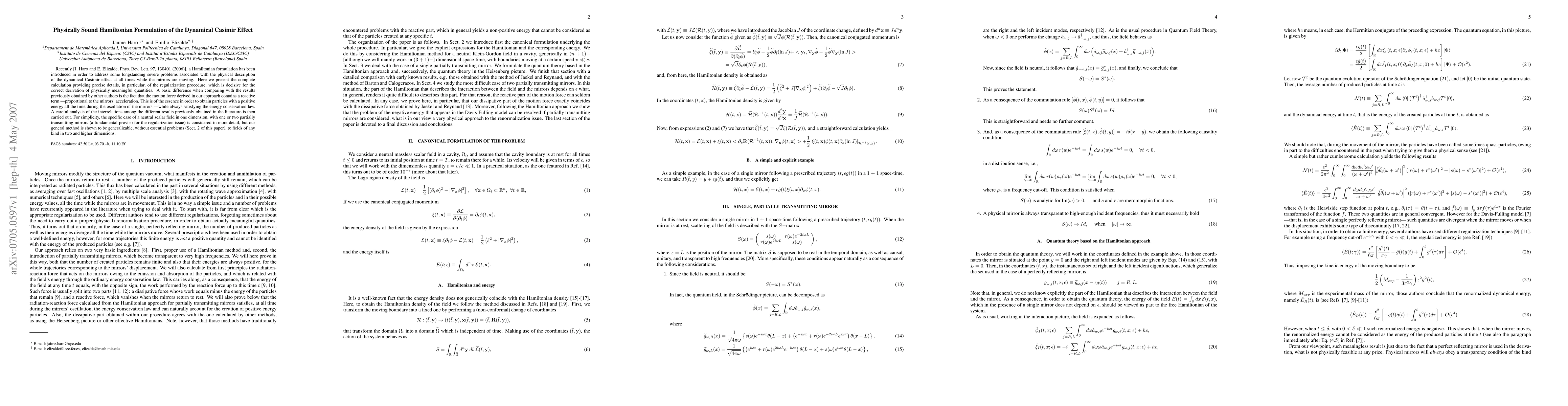 This paper presents a Hamiltonian formulation to accurately describe the dynamical Casimir effect during mirror motion, emphasizing the inclusion of a reactive term in the motion force to ensure positive particle energy and energy conservation. The method is demonstrated in one dimension with neutral scalar fields, but is shown to be generalizable to higher dimensions.