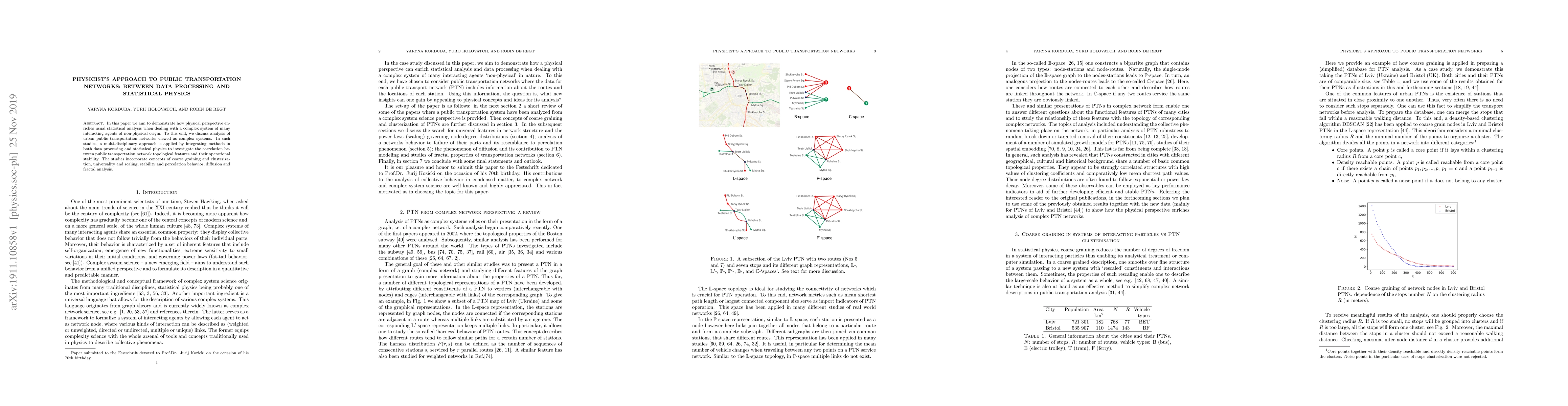This paper explores how physical methods enhance statistical analysis of urban public transportation networks, integrating data processing and statistical physics to study the correlation between network topology and operational stability. It employs concepts like coarse graining, universality, and percolation behavior to investigate network stability and dynamics.