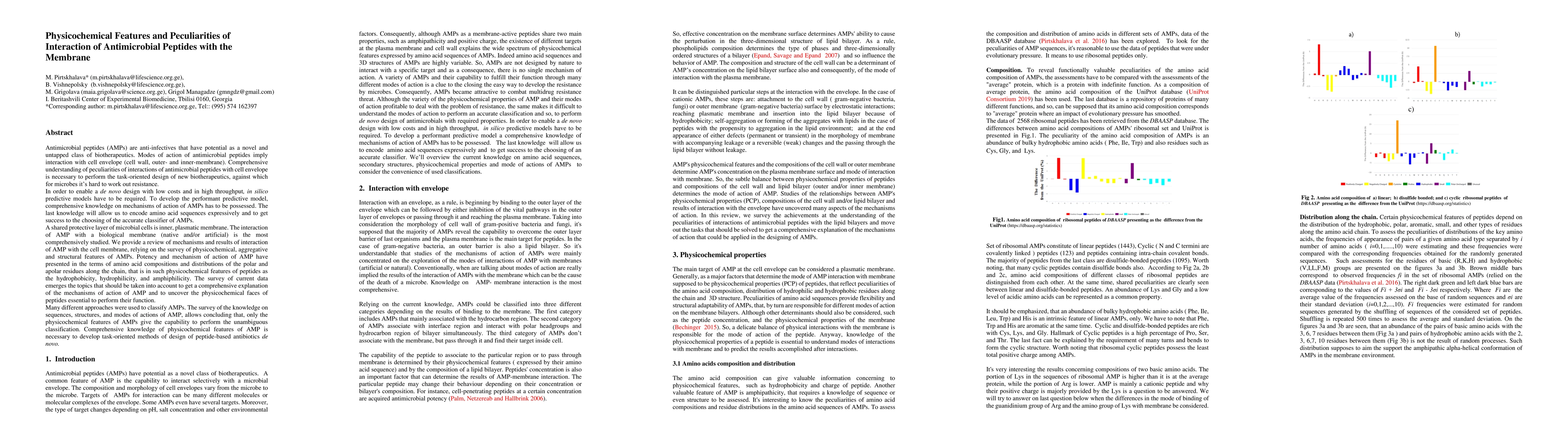 This paper reviews the physicochemical features and mechanisms of antimicrobial peptides (AMPs) interacting with microbial cell membranes, emphasizing the importance of understanding these interactions for designing new AMP-based biotherapeutics. It highlights that physicochemical properties like hydrophobicity and amphiphilicity are crucial for classifying AMPs and developing predictive models for their design.
