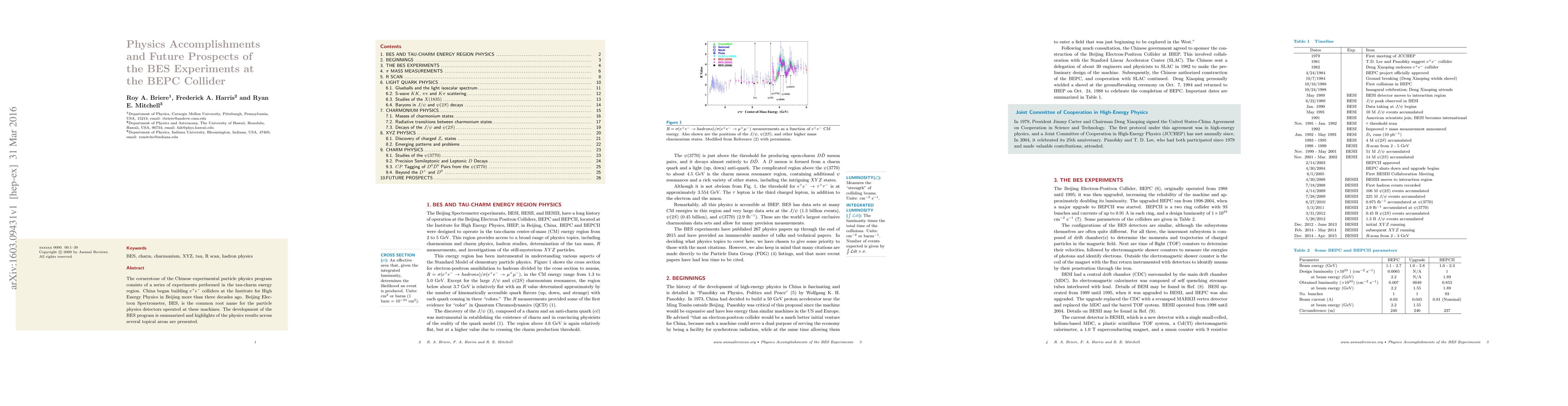 Summary: This paper reviews the achievements of the BES experiments at the BEPC collider, focusing on the Chinese experimental particle physics program in the tau-charm energy region, and outlines future prospects for these experiments.