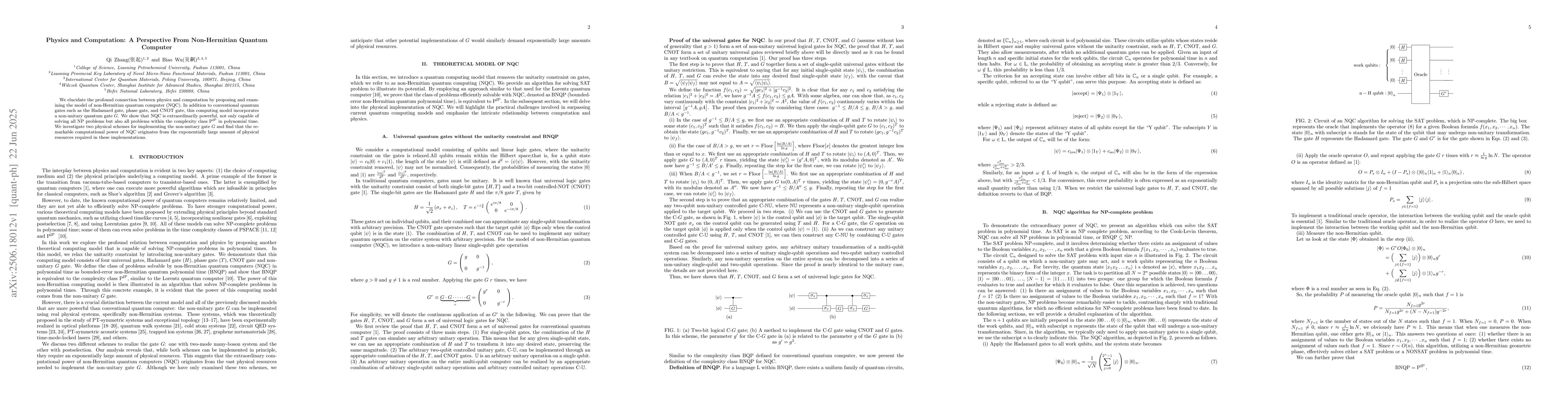 The research proposes a non-Hermitian quantum computer (NQC) model incorporating non-unitary gates, demonstrating its computational power through solving NP and P#P problems in polynomial time.