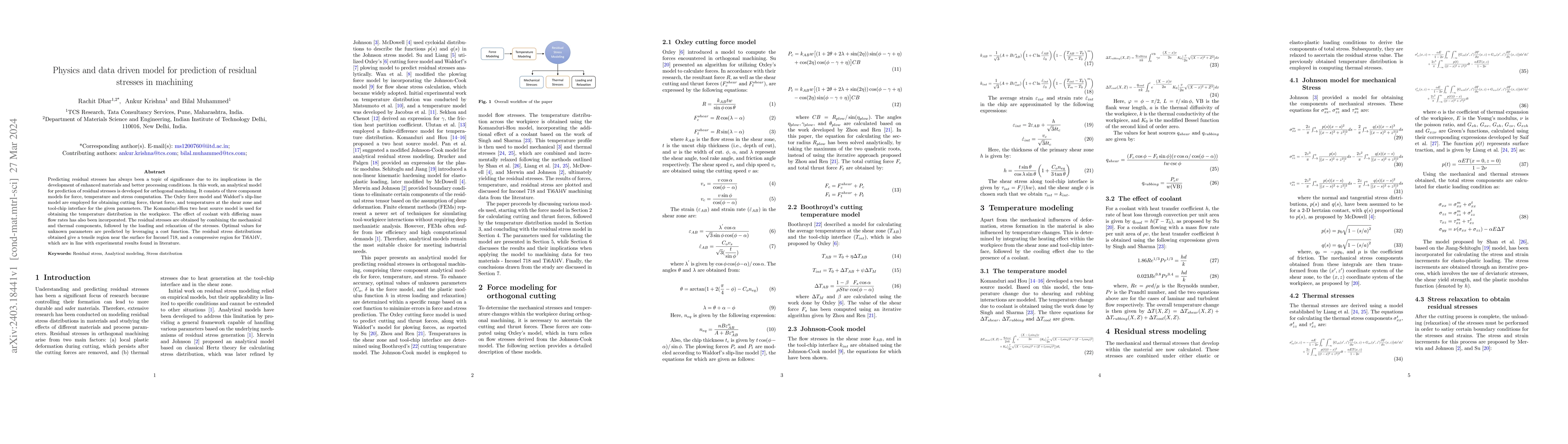 This study develops an analytical model integrating physics and data-driven approaches to predict residual stresses in orthogonal machining, incorporating force, temperature, and stress models. The model's predictions of stress distributions for Inconel 718 and Ti6Al4V align with experimental results, validating its effectiveness.