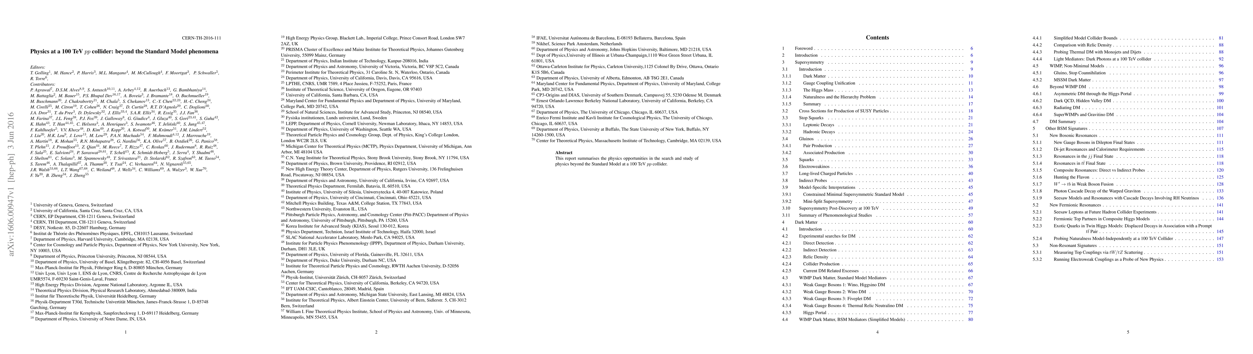 This paper explores the potential of a 100 TeV proton-proton collider to uncover phenomena beyond the Standard Model, focusing on new physics discoveries and their implications. It highlights the collider's capability to probe high-energy physics beyond current experimental limits.