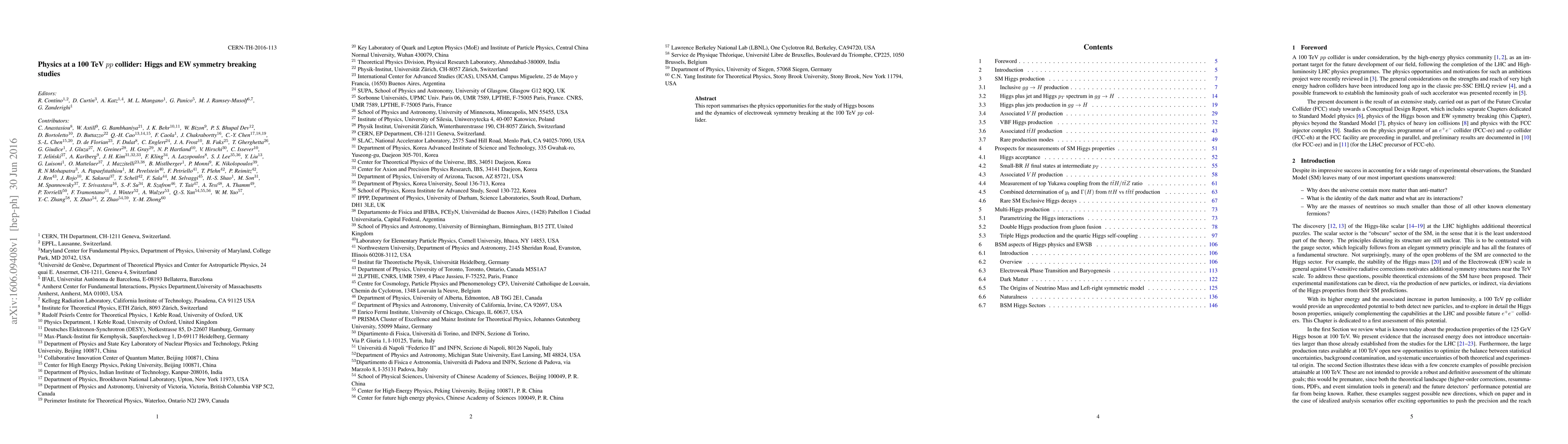 This paper explores the potential of a 100 TeV proton-proton collider to study Higgs bosons and the mechanisms of electroweak symmetry breaking, highlighting significant advancements in our understanding of these fundamental processes.