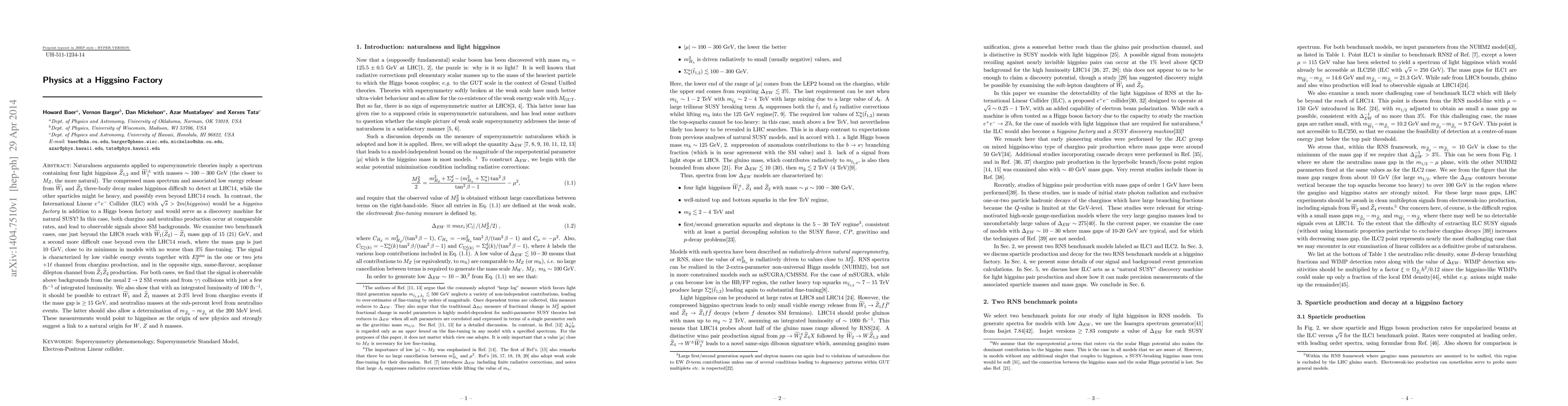Naturalness arguments applied to supersymmetric theories imply a spectrum containing four light higgsinos \tz_{1,2} and \tw_1^+- with masses ~ 100-300 GeV (the closer to M_Z the more natural). The compressed mass spectrum and associated low energy release from \tw_1 and \tz_2 three-body decay makes higgsinos difficult to detect at LHC14, while the other sparticles might be heavy, and possibly even beyond LHC14 reach. In contrast, the International Linear e^+e^- Collider (ILC) with \sqrt{s}>2m(higgsino) would be a {\it higgsino factory} in addition to a Higgs boson factory and would serve as a discovery machine for natural SUSY! In this case, both chargino and neutralino production %which give rise to distinct event topologies, occur at comparable rates, and lead to observable signals above SM backgrounds. We examine two benchmark cases, one just beyond the LHC8 reach with \tw_1(\tz_2)-\tz_1 mass gap of 15 (21) GeV, and a second more difficult case beyond even the LHC14 reach, where the mass gap is just 10 GeV, close to its minimum in models with no worse than 3% fine-tuning. The signal is characterized by low visible energy events together with MET in the one or two jets +1\ell channel from chargino production, and in the opposite sign, same-flavour, acoplanar dilepton channel from \tz_1\tz_2 production. For both cases, we find that the signal is observable above backgrounds from the usual 2-> 2 SM events and from \gamma\gamma collisions with just a few fb^{-1} of integrated luminosity. We also show that with an integrated luminosity of 100~fb^{-1}, it should be possible to extract \tw_1, \tz_2 and \tz_1 masses to percent level. These measurements would point to higgsinos as the origin of new physics and strongly suggest a link to a natural origin for W, Z and h masses.