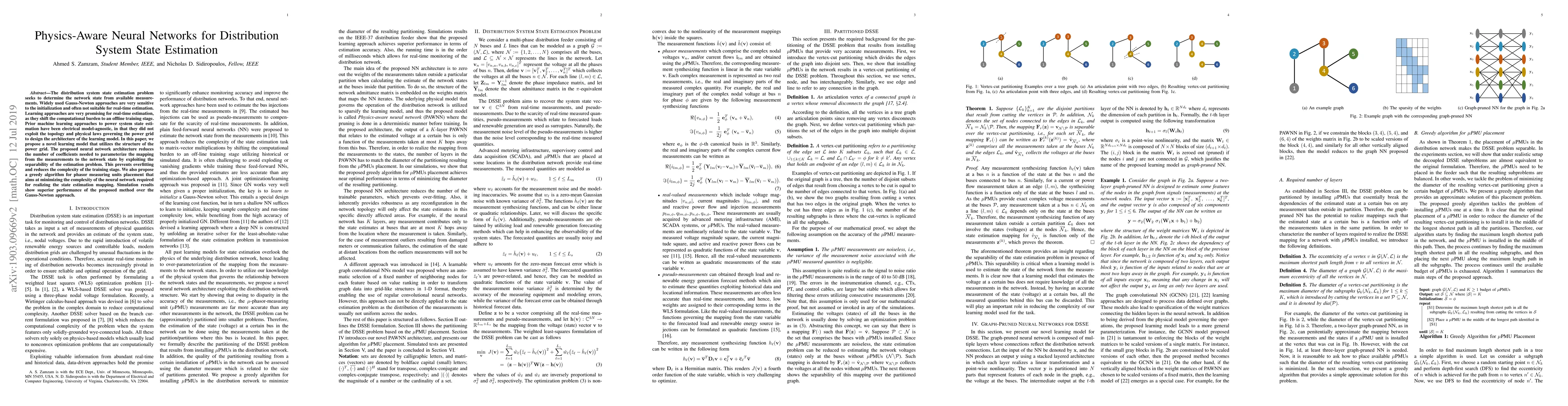 This paper proposes a physics-aware neural network for real-time distribution system state estimation, leveraging the power grid's topology and physical laws to reduce model complexity and prevent overfitting. Simulation results demonstrate superior performance compared to traditional Gauss-Newton methods.