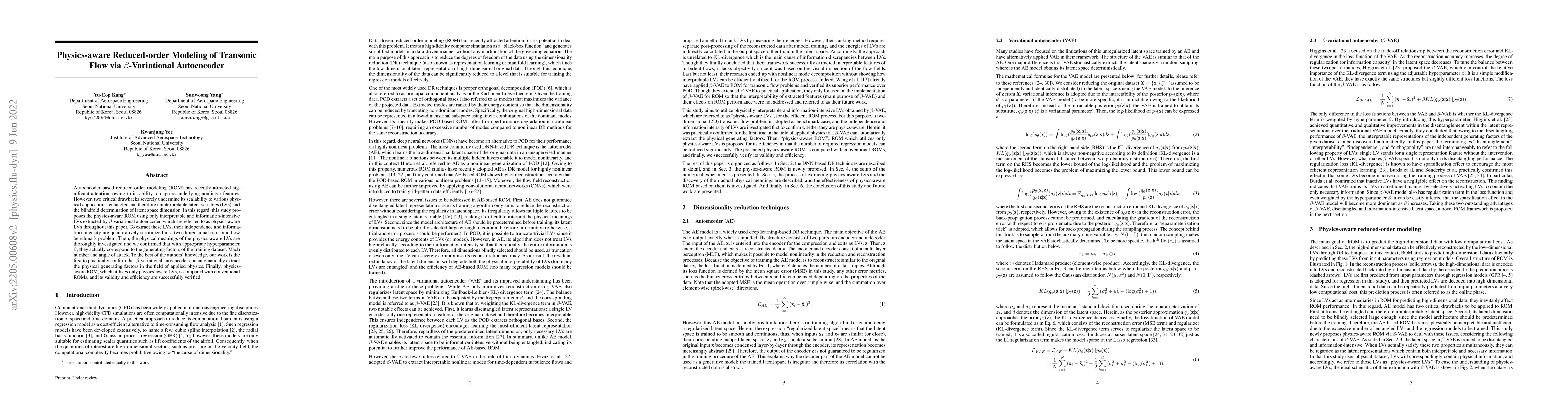 This paper proposes a physics-aware reduced-order modeling (ROM) using $\beta$-variational autoencoder to extract interpretable latent variables (LVs) for transonic flow. The study confirms that these LVs correspond to physical factors like Mach number and angle of attack, demonstrating the method's efficiency and validity compared to conventional ROMs.