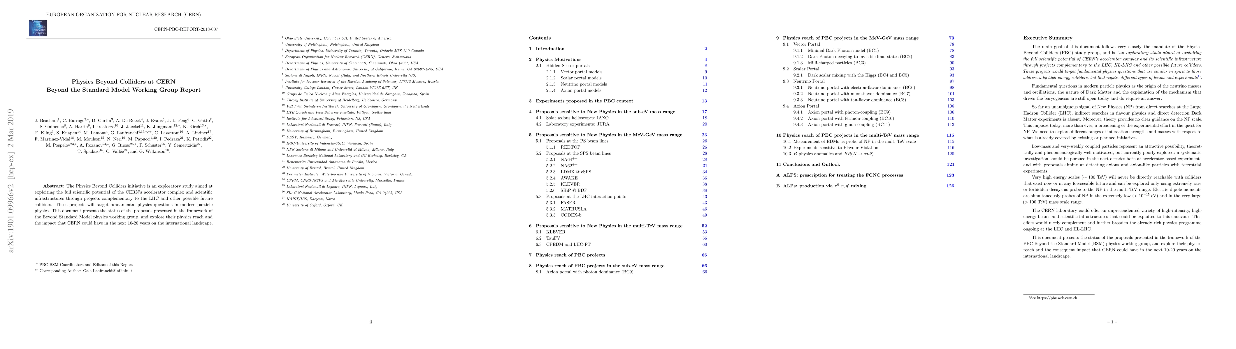 This report explores CERN's Physics Beyond Colliders initiative, focusing on projects complementary to the LHC that aim to address fundamental questions in modern particle physics. It assesses the potential impact of these initiatives on the international scientific landscape over the next decade to two decades.