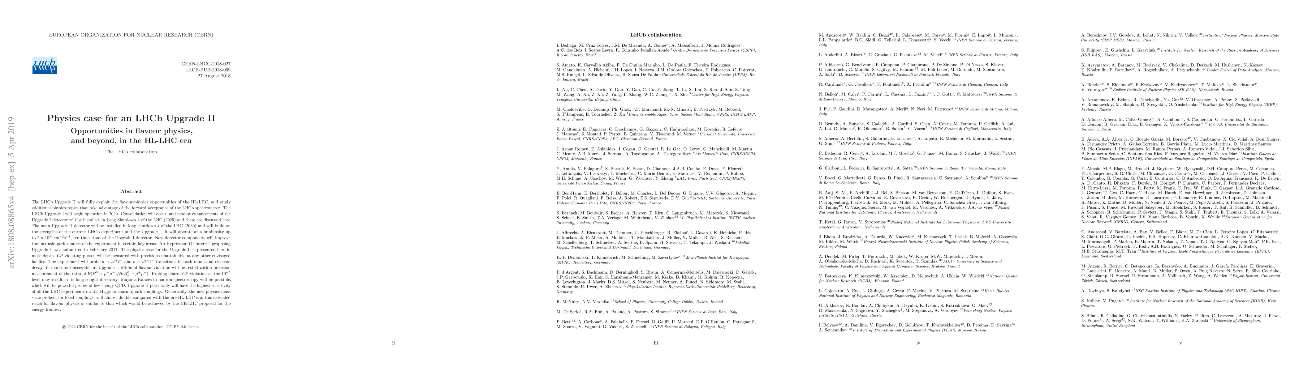 The LHCb Upgrade II will fully exploit the flavour-physics opportunities of the HL-LHC, and study additional physics topics that take advantage of the forward acceptance of the LHCb spectrometer. The LHCb Upgrade I will begin operation in 2020. Consolidation will occur, and modest enhancements of the Upgrade I detector will be installed, in Long Shutdown 3 of the LHC (2025) and these are discussed here. The main Upgrade II detector will be installed in long shutdown 4 of the LHC (2030) and will build on the strengths of the current LHCb experiment and the Upgrade I. It will operate at a luminosity up to $ 2 \times 10^{34} \rm cm^{-2}s^{-1}$, ten times that of the Upgrade I detector. New detector components will improve the intrinsic performance of the experiment in certain key areas. An Expression Of Interest proposing Upgrade II was submitted in February 2017. The physics case for the Upgrade II is presented here in more depth. $CP$-violating phases will be measured with precisions unattainable at any other envisaged facility. The experiment will probe $b\to s \ell^+\ell^-$ and $b\to d \ell^+\ell^-$ transitions in both muon and electron decays in modes not accessible at Upgrade I. Minimal flavour violation will be tested with a precision measurement of the ratio of $B(B^0\to\mu^+\mu^-)/B(B_s^0\to \mu^+\mu^-)$. Probing charm $CP$ violation at the $10^{-5}$ level may result in its long sought discovery. Major advances in hadron spectroscopy will be possible, which will be powerful probes of low energy QCD. Upgrade II potentially will have the highest sensitivity of all the LHC experiments on the Higgs to charm-quark couplings. Generically, the new physics mass scale probed, for fixed couplings, will almost double compared with the pre-HL-LHC era; this extended reach for flavour physics is similar to that which would be achieved by the HE-LHC proposal for the energy frontier.