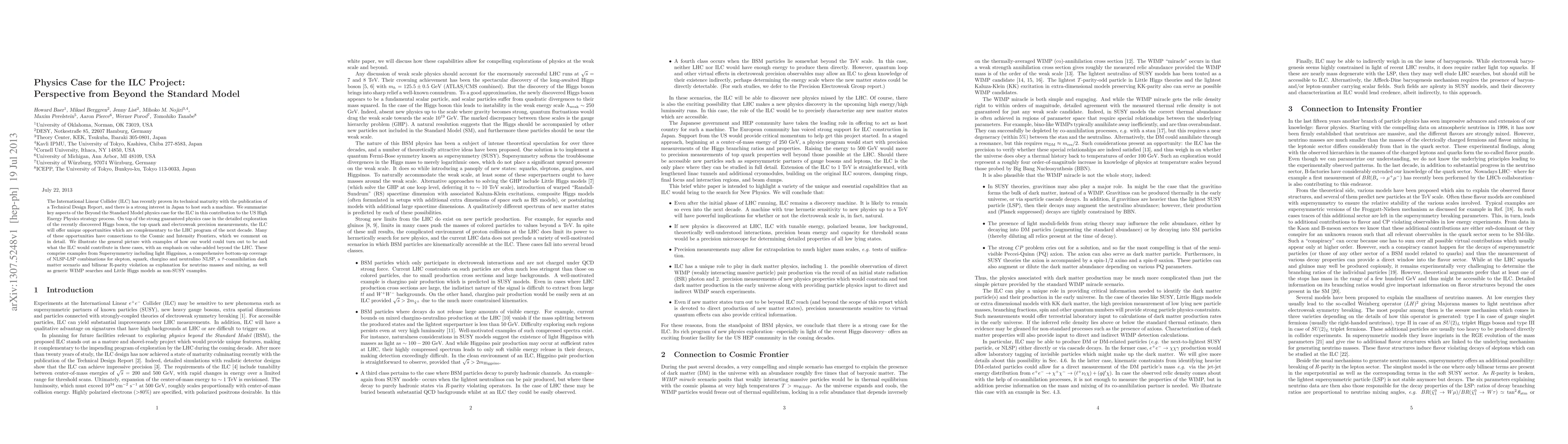 The International Linear Collider (ILC) has recently proven its technical maturity with the publication of a Technical Design Report, and there is a strong interest in Japan to host such a machine. We summarize key aspects of the Beyond the Standard Model physics case for the ILC in this contribution to the US High Energy Physics strategy process. On top of the strong guaranteed physics case in the detailed exploration of the recently discovered Higgs boson, the top quark and electroweak precision measurements, the ILC will offer unique opportunities which are complementary to the LHC program of the next decade. Many of these opportunities have connections to the Cosmic and Intensity Frontiers, which we comment on in detail. We illustrate the general picture with examples of how our world could turn out to be and what the ILC would contribute in these cases, with an emphasis on value-added beyond the LHC. These comprise examples from Supersymmetry including light Higgsinos, a comprehensive bottom-up coverage of NLSP-LSP combinations for slepton, squark, chargino and neutralino NLSP, a stau-coannihilation dark matter scenario and bilinear R-parity violation as explanation for neutrino masses and mixing, as well as generic WIMP searches and Little Higgs models as non-SUSY examples.