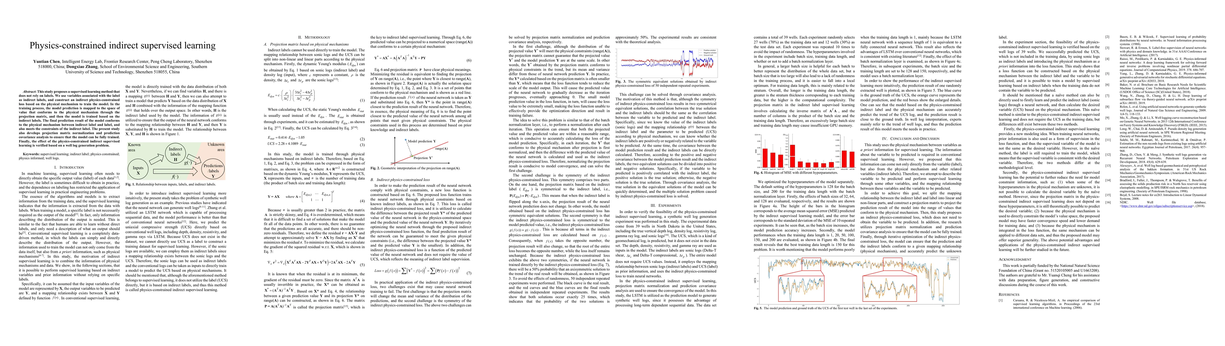 This study proposes a supervised learning method that does not rely on labels. We use variables associated with the label as indirect labels, and construct an indirect physics-constrained loss based on the physical mechanism to train the model. In the training process, the model prediction is mapped to the space of value that conforms to the physical mechanism through the projection matrix, and then the model is trained based on the indirect labels. The final prediction result of the model conforms to the physical mechanism between indirect label and label, and also meets the constraints of the indirect label. The present study also develops projection matrix normalization and prediction covariance analysis to ensure that the model can be fully trained. Finally, the effect of the physics-constrained indirect supervised learning is verified based on a well log generation problem.