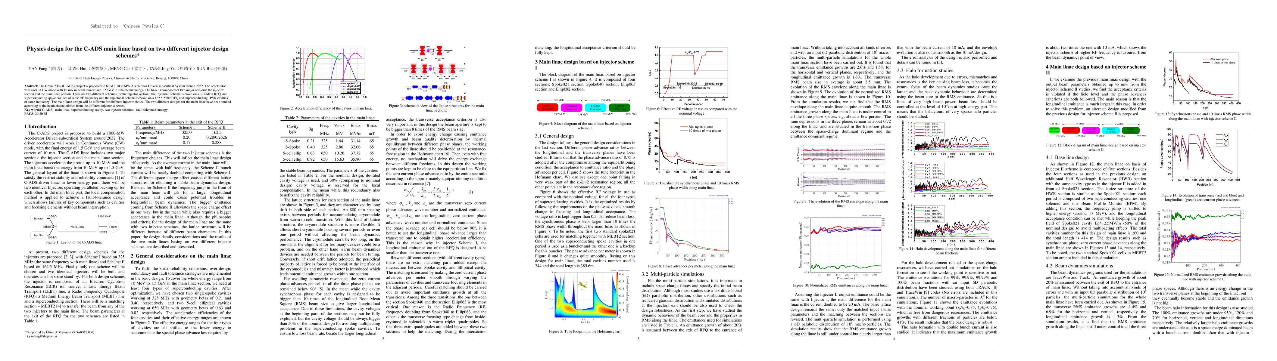 The China ADS (C-ADS) project is proposed to build a 1000 MW Accelerator Driven sub-critical System around 2032. The accelerator will work in CW mode with 10 mA in beam current and 1.5 GeV in final beam energy. The linac is composed of two major sections: the injector section and the main linac section. There are two different schemes for the injector section. The Injector-I scheme is based on a 325-MHz RFQ and superconducting spoke cavities of same RF frequency and the Injector-II scheme is based on a 162.5-MHz RFQ and superconducting HWR cavities of same frequency. The main linac design will be different for different injector choice. The two different designs for the main linac have been studied according to the beam characteristics from the different injector schemes.