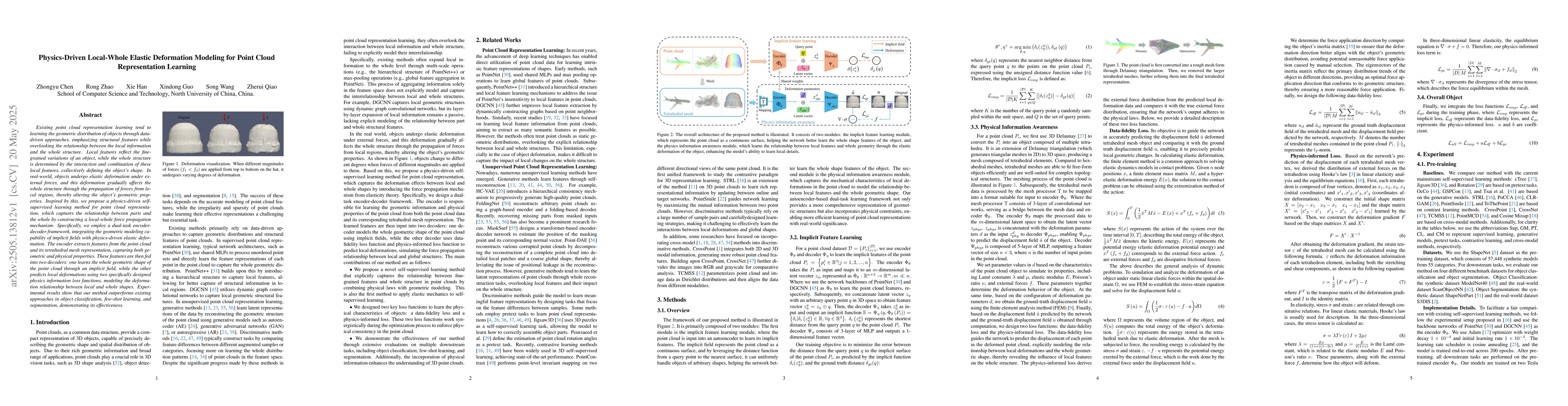 This research is important as it addresses the oversight in existing data-driven point cloud representation learning methods, which often neglect the relationship between local information and the whole structure. By incorporating physics-driven elastic deformation, the method enhances the understanding of object shape through the interaction of local features and their propagation to affect the whole structure.