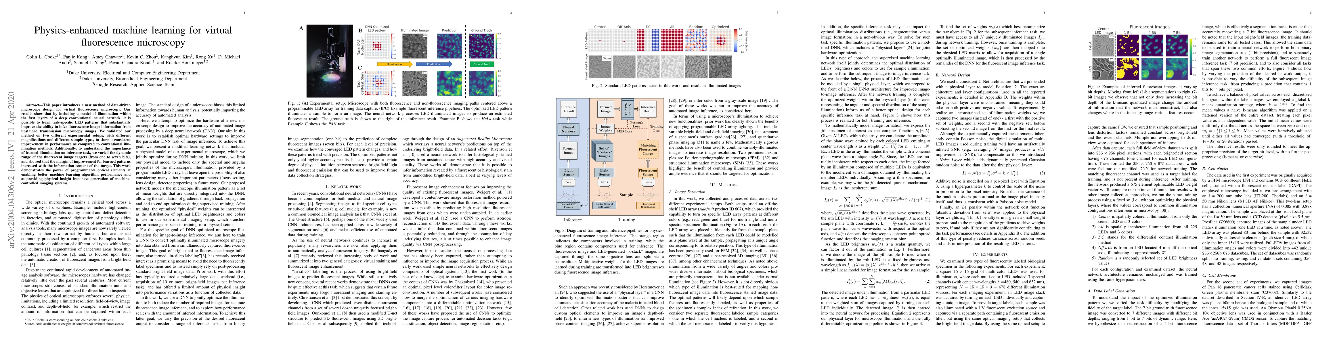 A new method of data-driven microscope design improves fluorescence image information inference from unstained transmission microscopy images using programmable LED patterns. This approach outperforms conventional illumination methods and provides physical insight into machine-controlled imaging systems.