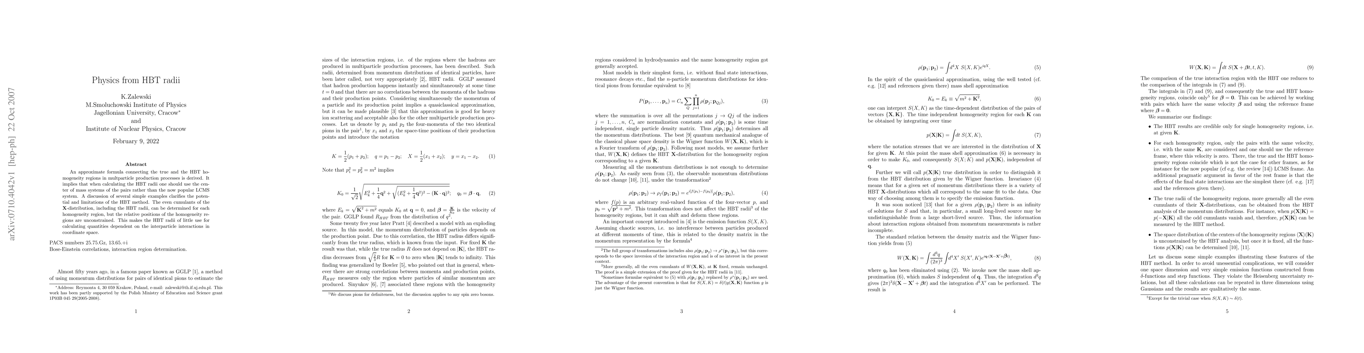 This paper derives an approximate formula linking true and HBT homogeneity regions in multiparticle production, suggesting the use of center of mass systems for HBT radii calculations instead of the LCMS. It discusses the potential and limitations of the HBT method, noting that while HBT radii can be determined, they are not useful for calculating interparticle interaction-dependent quantities.