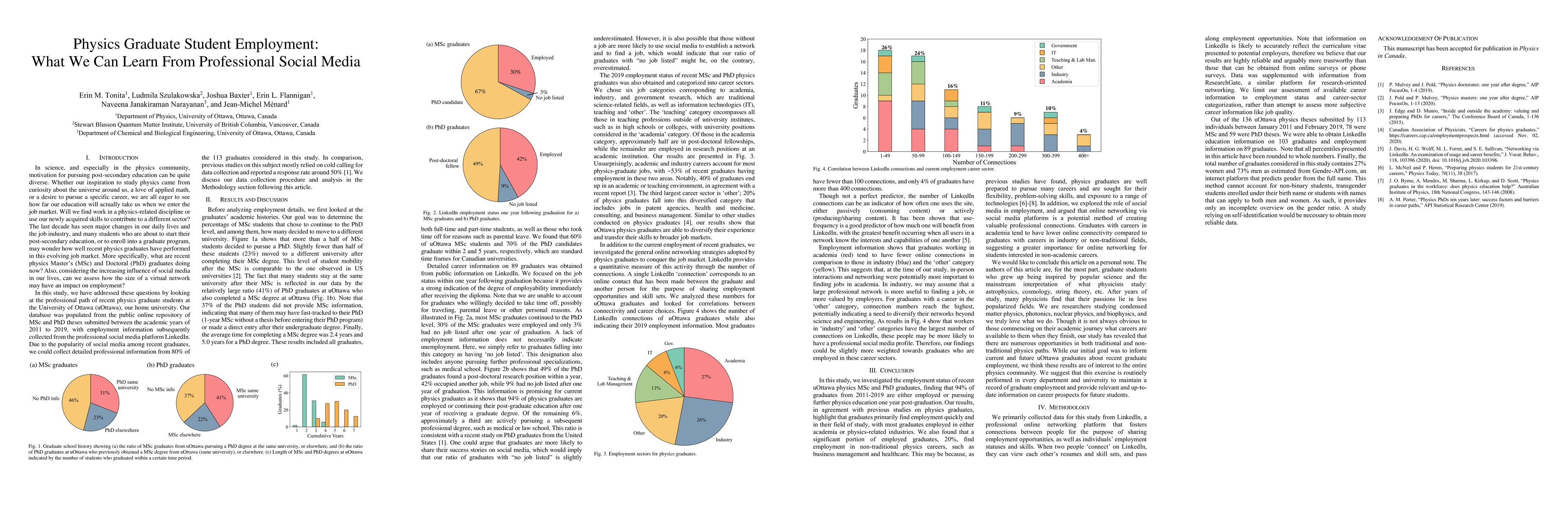 In this study, we investigated the employment status of recent University of Ottawa physics MSc and PhD graduates, finding that 94% of graduates are either employed or pursuing further physics education one year post-graduation. Our database was populated from the public online repository of MSc and PhD theses submitted between the academic years of 2011 to 2019, with employment information collected in 2020 from the professional social media platform LinkedIn. Our results highlight that graduates primarily find employment quickly and in their field of study, with most graduates employed in either academia or physics-related industries. We also found that a significant portion of employed graduates, 20%, find employment in non-traditional physics careers, such as business management and healthcare. Graduates with careers in academia tend to have lower online connectivity compared to graduates with careers in industry or non-traditional fields, suggesting a greater importance for online networking for students interested in non-academic careers.