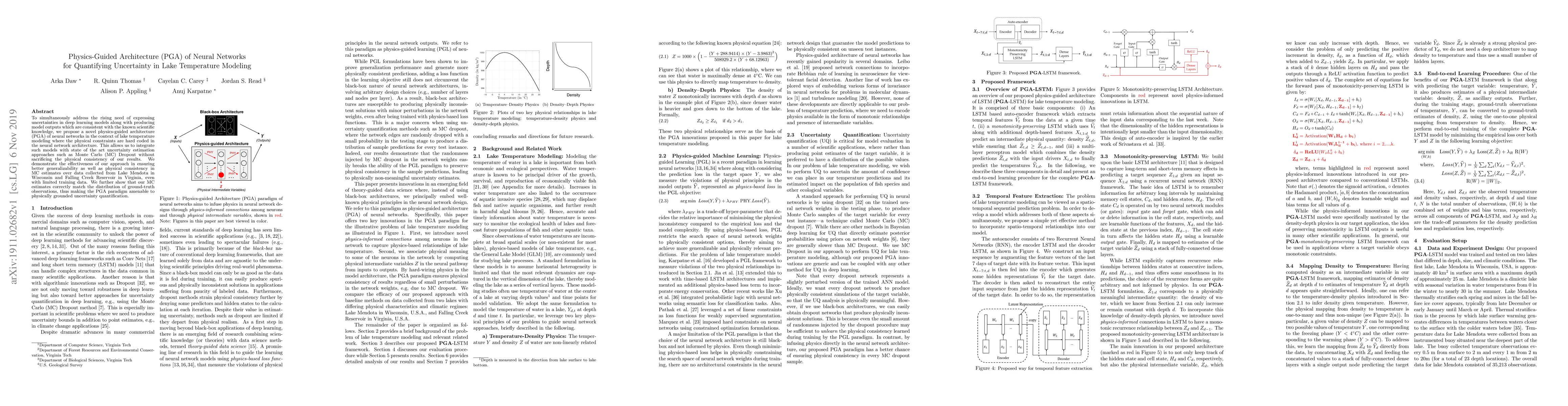 This paper proposes a novel physics-guided architecture (PGA) of neural networks to model lake temperature while incorporating physical constraints directly into the network design. The PGA integrates with Monte Carlo Dropout for uncertainty quantification, demonstrating improved generalizability and physical consistency in uncertainty estimates for lakes in Wisconsin and Virginia.