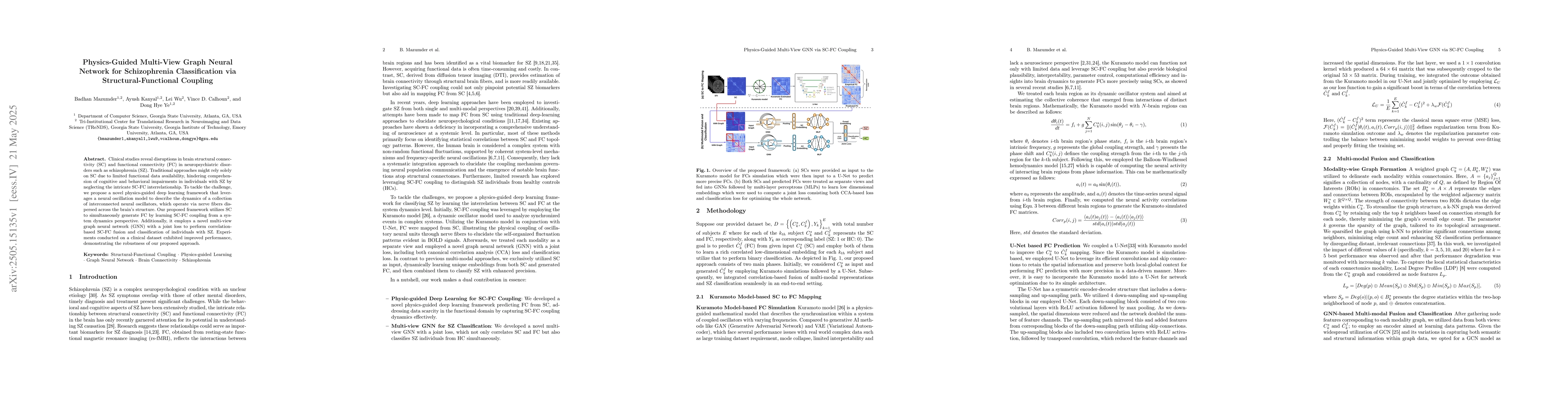This work stands out by combining physics-guided modeling with multi-view GNNs for schizophrenia classification, addressing the interrelationship between SC and FC, which previous methods have largely neglected.