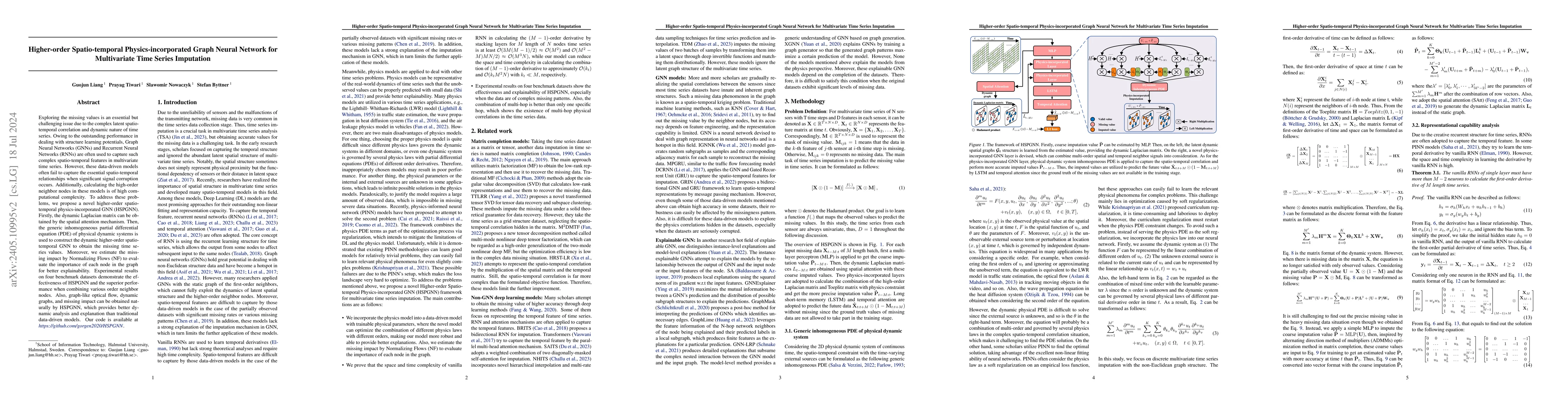 This research introduces a higher-order spatio-temporal physics-incorporated Graph Neural Network (HSPGNN) for multivariate time series imputation, combining dynamic Laplacian matrices and PDEs to capture complex correlations. The model demonstrates superior performance and provides better dynamic analysis compared to traditional data-driven methods.