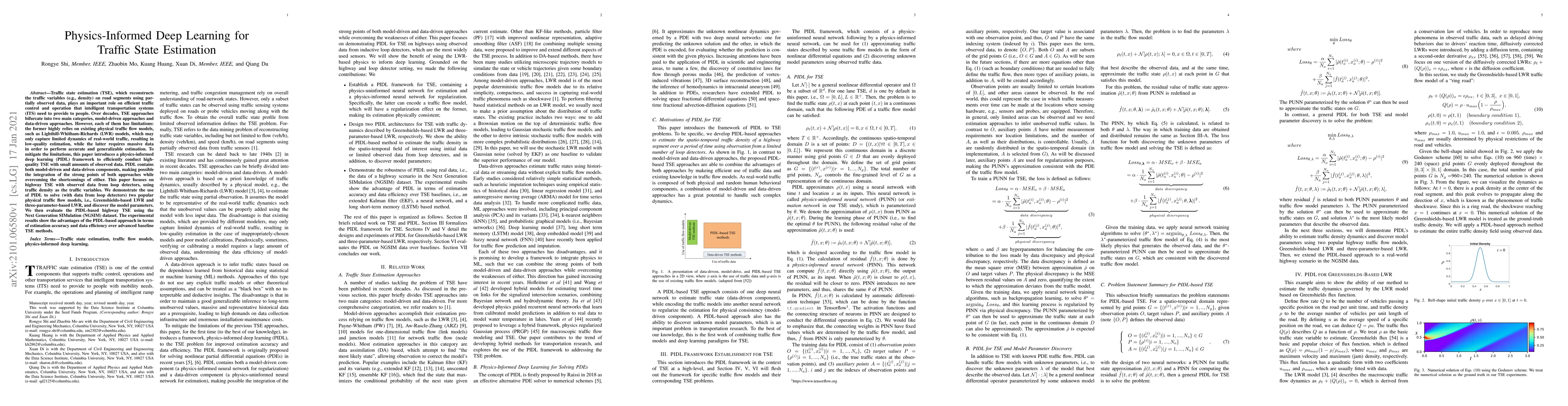 This paper proposes a physics-informed deep learning (PIDL) framework for efficient traffic state estimation (TSE) using limited observed data. The PIDL method integrates model-driven and data-driven components to overcome the limitations of both traditional approaches, achieving high-quality TSE with small datasets.