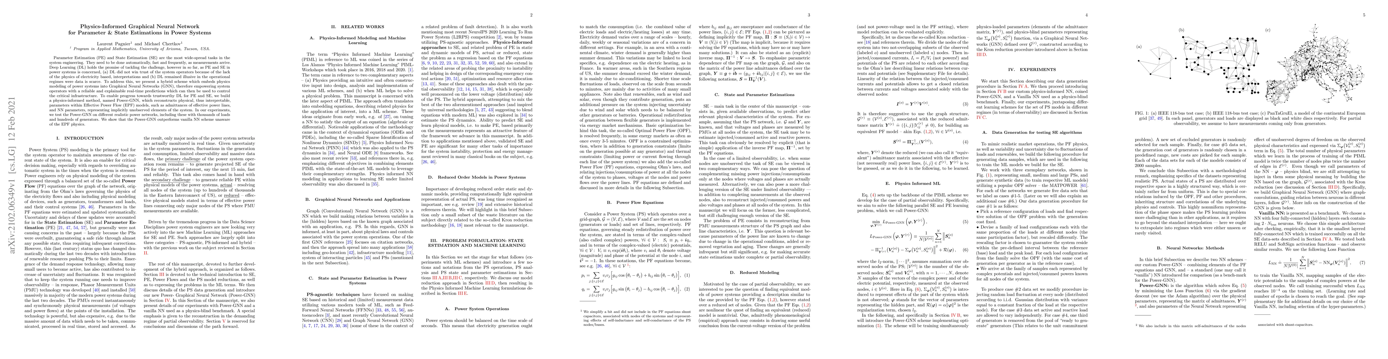 Parameter Estimation (PE) and State Estimation (SE) are the most wide-spread tasks in the system engineering. They need to be done automatically, fast and frequently, as measurements arrive. Deep Learning (DL) holds the promise of tackling the challenge, however in so far, as PE and SE in power systems is concerned, (a) DL did not win trust of the system operators because of the lack of the physics of electricity based, interpretations and (b) DL remained illusive in the operational regimes were data is scarce. To address this, we present a hybrid scheme which embeds physics modeling of power systems into Graphical Neural Networks (GNN), therefore empowering system operators with a reliable and explainable real-time predictions which can then be used to control the critical infrastructure. To enable progress towards trustworthy DL for PE and SE, we build a physics-informed method, named Power-GNN, which reconstructs physical, thus interpretable, parameters within Effective Power Flow (EPF) models, such as admittances of effective power lines, and NN parameters, representing implicitly unobserved elements of the system. In our experiments, we test the Power-GNN on different realistic power networks, including these with thousands of loads and hundreds of generators. We show that the Power-GNN outperforms vanilla NN scheme unaware of the EPF physics.