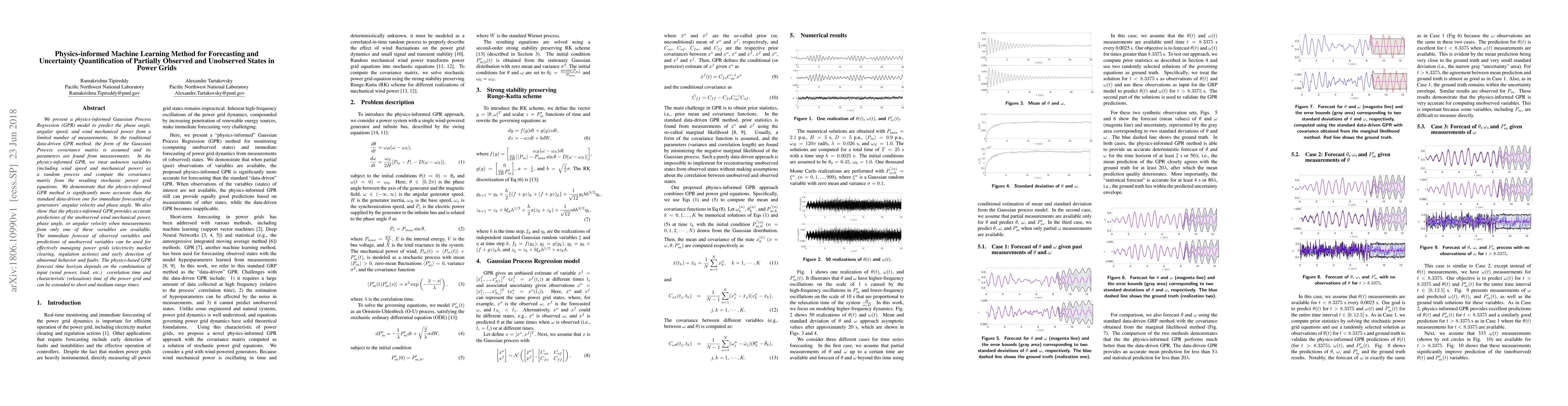 This paper introduces a physics-informed Gaussian Process Regression model to accurately forecast and quantify uncertainties in partially observed states of power grids, outperforming traditional data-driven methods. The model effectively predicts angular velocity, phase angle, and unobserved wind mechanical power, aiding in grid management and fault detection.
