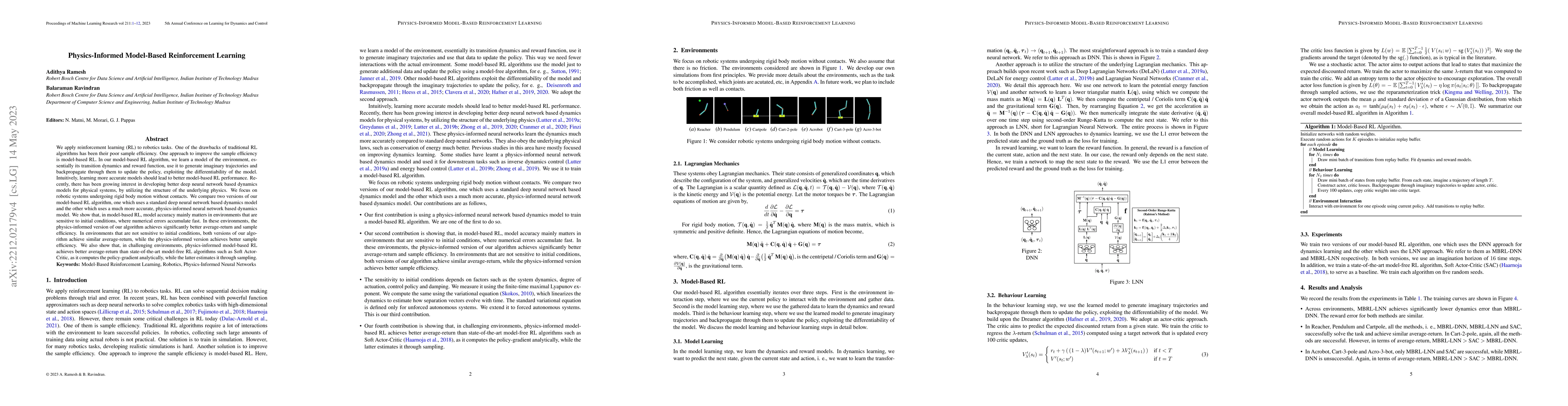 This paper proposes a physics-informed model-based reinforcement learning algorithm for robotics tasks, demonstrating that using a more accurate physics-informed neural network model significantly improves sample efficiency and average-return in environments sensitive to initial conditions, outperforming state-of-the-art model-free RL algorithms in challenging scenarios.