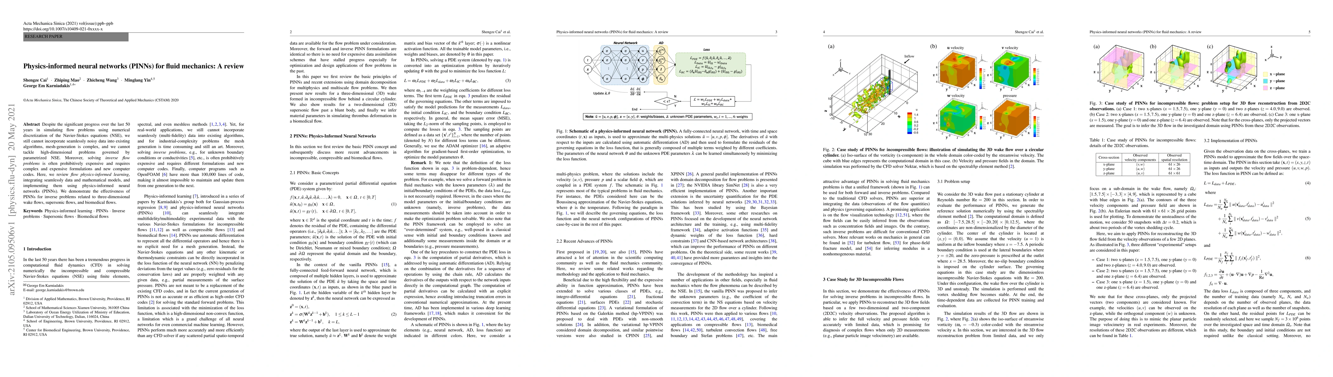 The paper presents a comprehensive review of PINNs for fluid mechanics, demonstrating their effectiveness in solving forward and inverse problems, and discussing various architectures and applications.