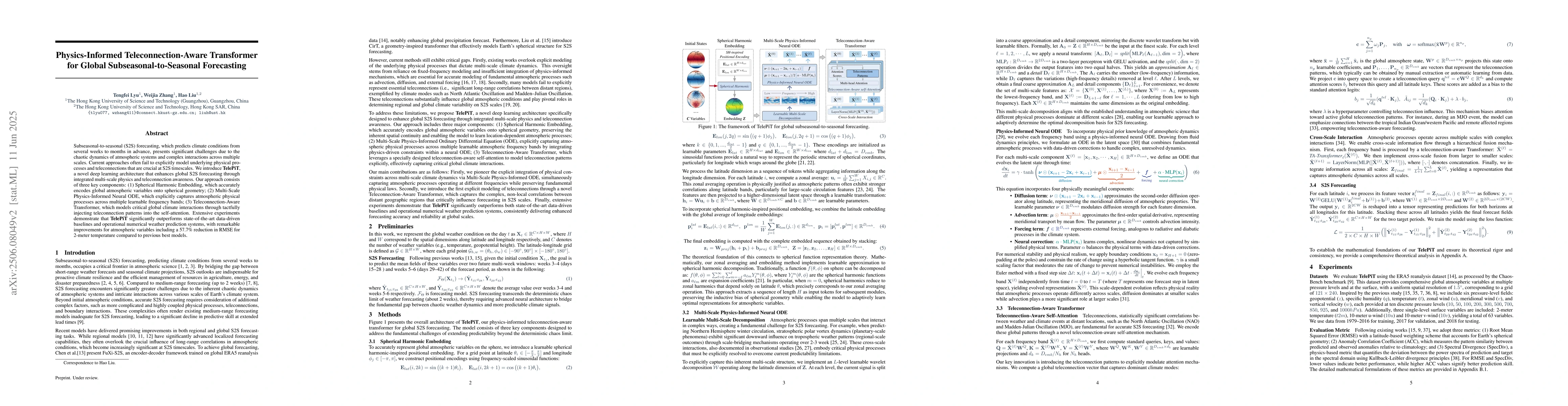 A new deep learning model called TelePiT improves global subseasonal-to-seasonal forecasting by incorporating physical processes and teleconnections, outperforming existing models with a 57.7% reduction in temperature RMSE.