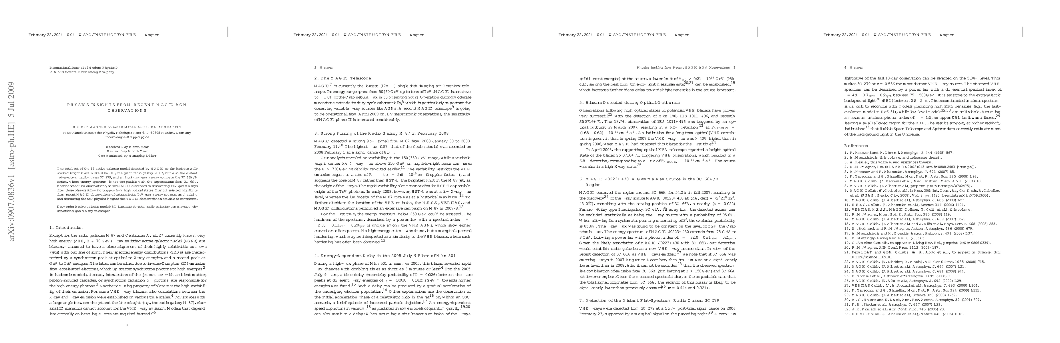 The MAGIC telescope has detected TeV gamma rays from 14 active galactic nuclei, including notable blazars and radio galaxies, providing new insights into their high-energy emissions and challenging existing models. Recent observations have also revealed unexpected gamma-ray sources and detected TeV emissions triggered by high optical states in blazars.
