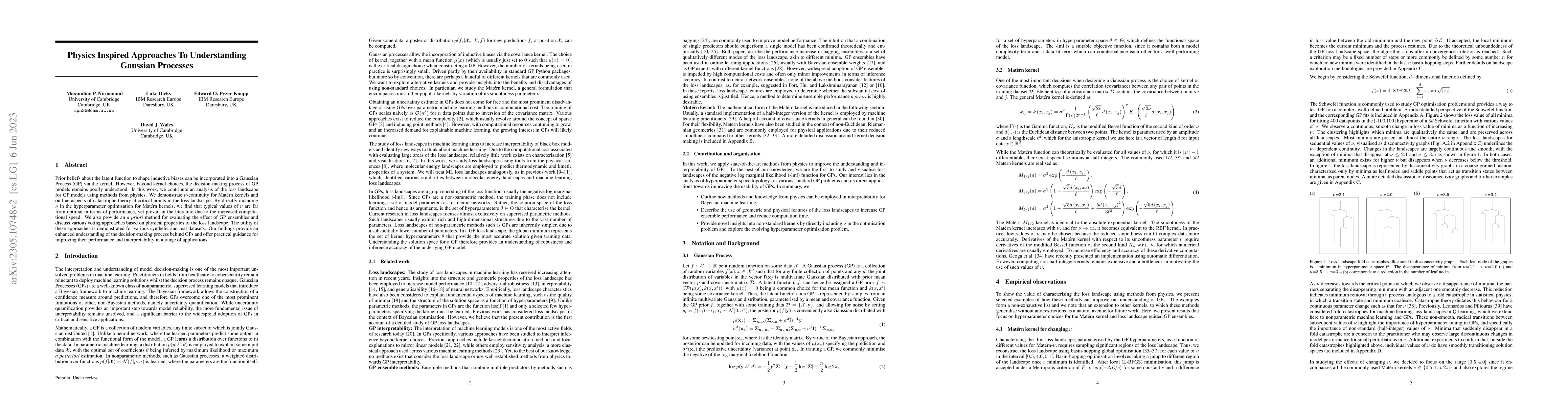 Prior beliefs about the latent function to shape inductive biases can be incorporated into a Gaussian Process (GP) via the kernel. However, beyond kernel choices, the decision-making process of GP models remains poorly understood. In this work, we contribute an analysis of the loss landscape for GP models using methods from physics. We demonstrate $\nu$-continuity for Matern kernels and outline aspects of catastrophe theory at critical points in the loss landscape. By directly including $\nu$ in the hyperparameter optimisation for Matern kernels, we find that typical values of $\nu$ are far from optimal in terms of performance, yet prevail in the literature due to the increased computational speed. We also provide an a priori method for evaluating the effect of GP ensembles and discuss various voting approaches based on physical properties of the loss landscape. The utility of these approaches is demonstrated for various synthetic and real datasets. Our findings provide an enhanced understanding of the decision-making process behind GPs and offer practical guidance for improving their performance and interpretability in a range of applications.